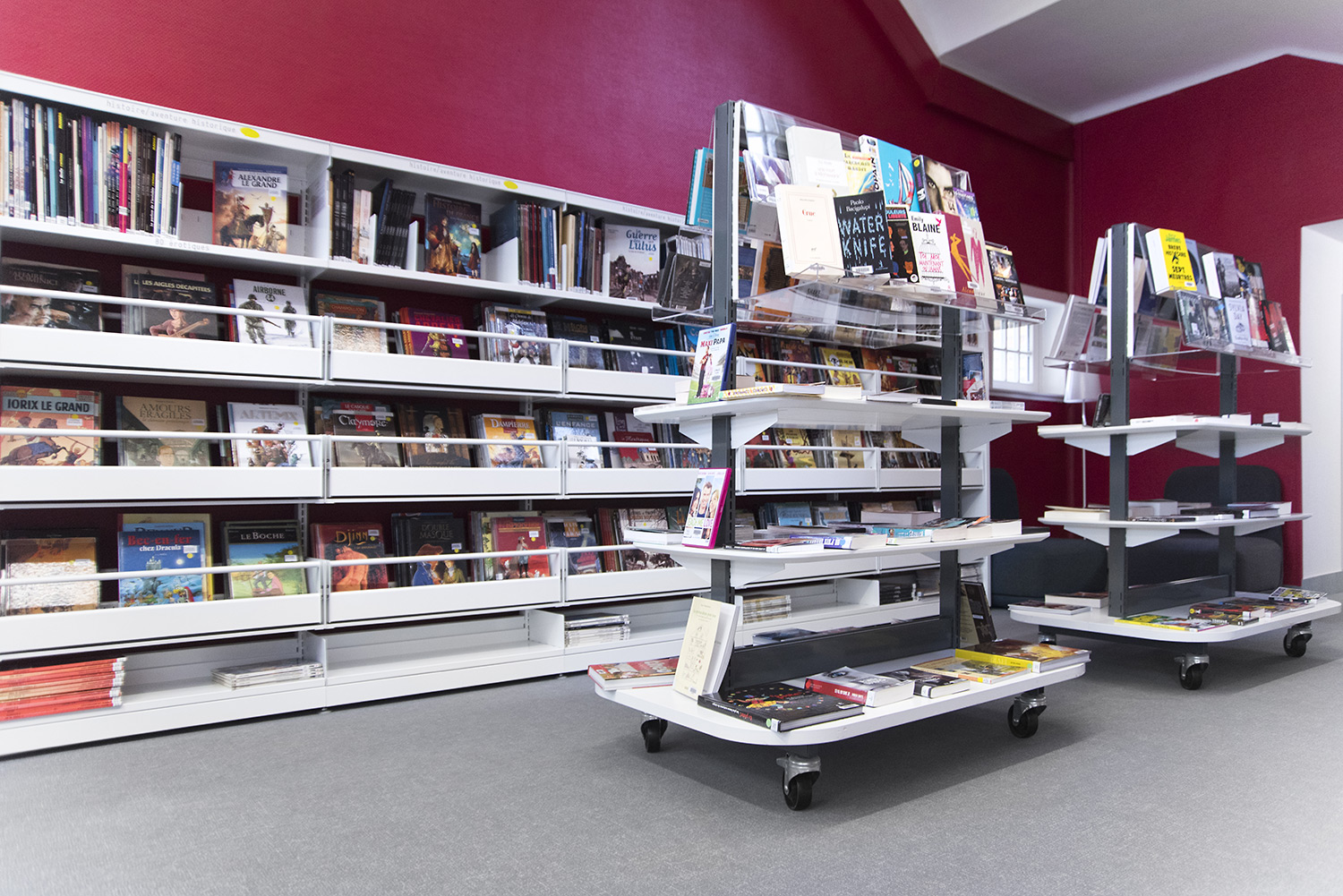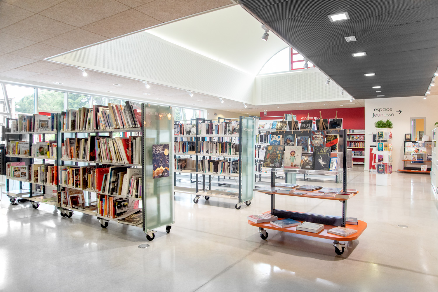 60/30 Expo est une déclinaison de notre système de rayonnage Classic 60/30. Il offre plus de transparence, d’espaces de présentation et d’expression. 60/30 Expo constitue le support idéal pour la présentation de livres : il ne manquera pas d’attirer le regard des utilisateurs et d’encourager les sélections « coups de cœur ». Son design permet une plus grande liberté de mouvement dans la bibliothèque et optimise la création d’espaces thématiques exposant des livres et des objets.