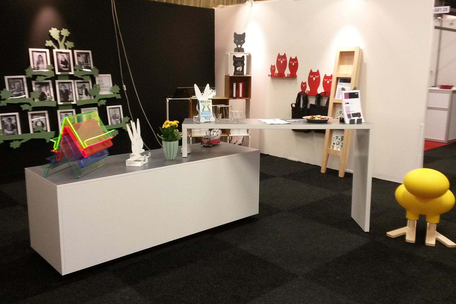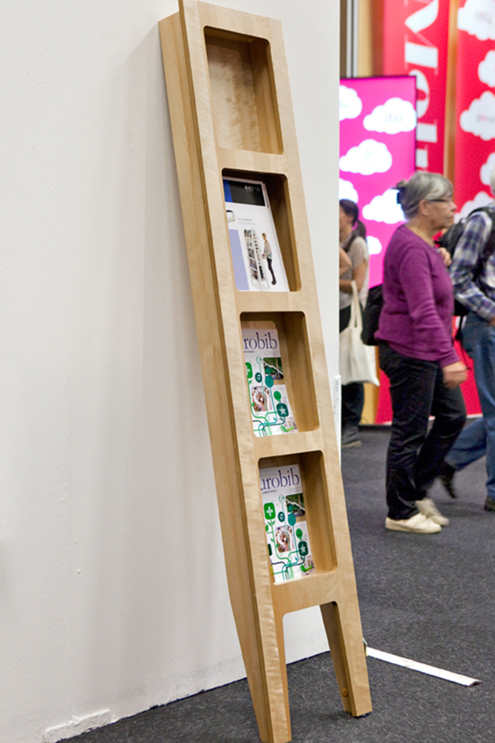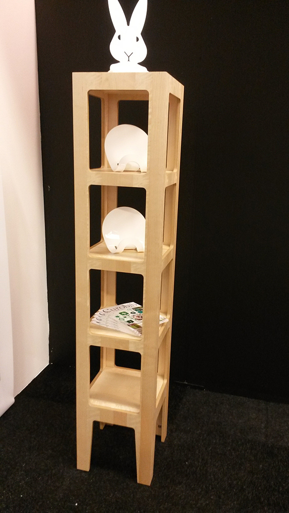 Notre stand de l’édition 2015 de la Foire du Livre a mis la nature à l’honneur : arbres, loups, lapins et autres oiseaux joyeux côtoyaient en effet quelques-unes de nos dernières nouveautés comme les tours de présentation en contreplaqué de bouleau, disponibles en version autonome ou à placer contre un mur. Ces dernières peuvent s’utiliser pour exposer différents éléments ou présenter des livres de face.