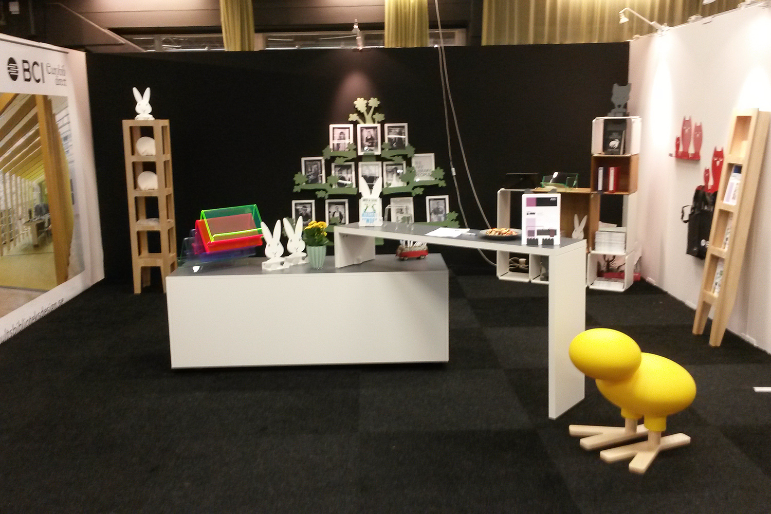 Les éléments de présentation Box et Bar de la gamme ShowIt, déclinés en blanc avec un plateau en laminé Virrvarr, ont servi à la fois d’espace de réunion et d’exposition tandis que l’Happy Bird a attiré le regard de nombreux visiteurs, lesquels ont en outre eu le privilège de pouvoir l’essayer.