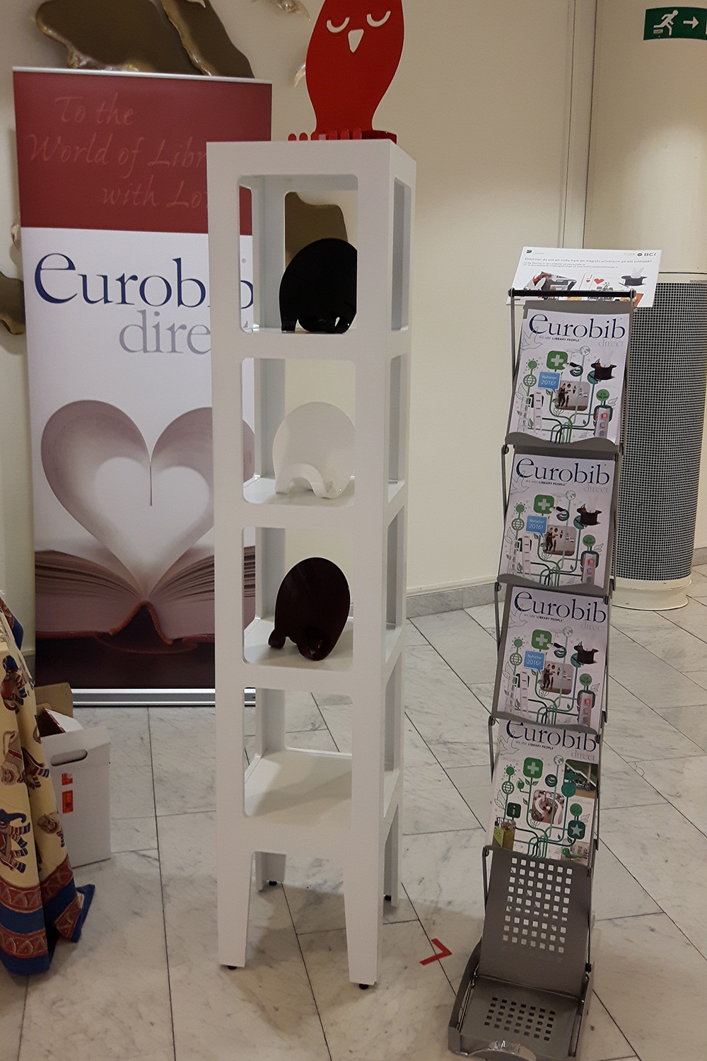 Nous avons présenté notre tour à livres sur roulettes, qui est une solution appréciée de présentation et de stockage des ouvrages permettant de rationaliser l’espace. L’ajout de roulettes nous avait déjà été suggéré et celles-ci font maintenant partie de notre gamme d’accessoires. La tour de présentation Just Now est une des solutions pour les livres et autres objets qui a attiré beaucoup de visiteurs à notre stand, tout comme les présentoirs Owl, Leaf, Rabbit, Wolf et Slitz.