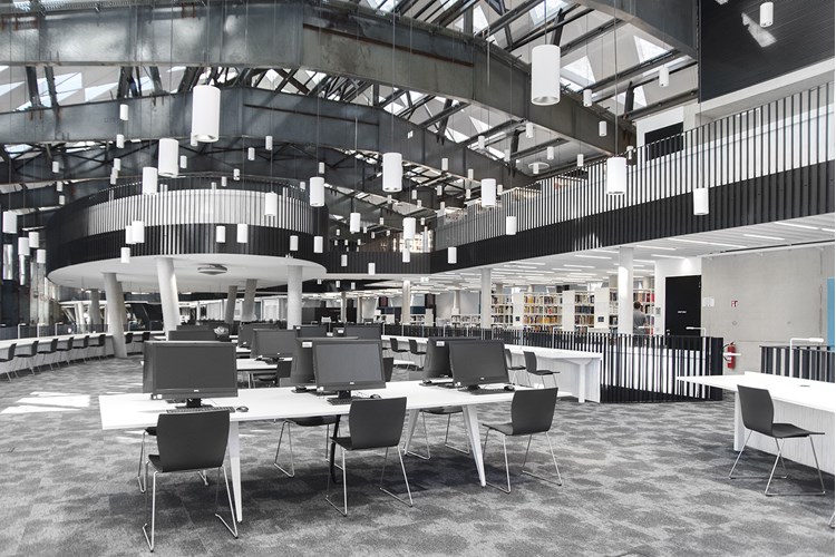 L’architecture remarquable et le mobilier de qualité supérieure offrent un cadre attrayant et flexible à cette bibliothèque scientifique, devenue désormais un agréable lieu de rencontre, d’étude et de partage de connaissances.