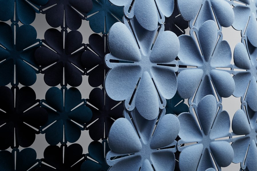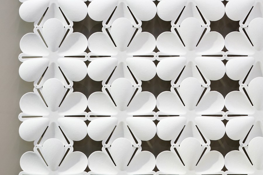 Airbloom d’Astracta, une création légère et élégante, offre une solution idéale pour structurer des espaces dynamiques et créer des séparations dans les bibliothèques, tout en optimisant l’acoustique. Inspiré par des modules évoquant des fleurs naturelles, il se compose d’éléments assemblés grâce à de petits connecteurs en plastique.