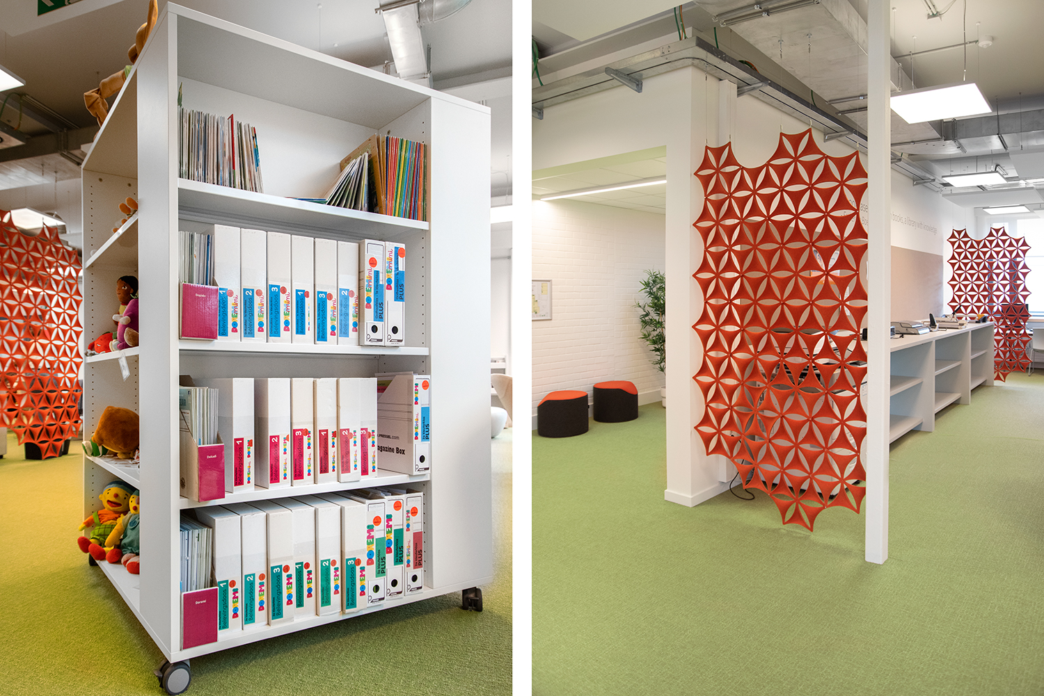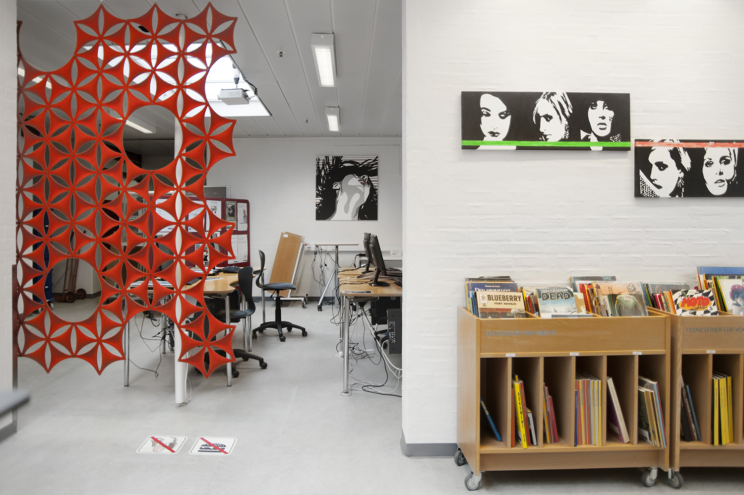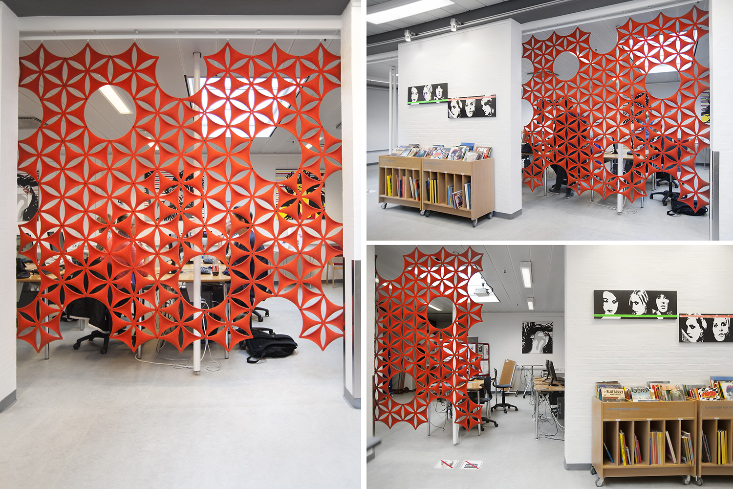 Airflake peut être utilisé de nombreuses façons pour former des espaces séparés au sein d’une pièce et assurer une parfaite diffusion acoustique. Le panneau est suspendu à l’aide d’un rail en aluminium ou d’attaches pour faux-plafond. Les modules sont combinés à l’aide de raccords en plastique.