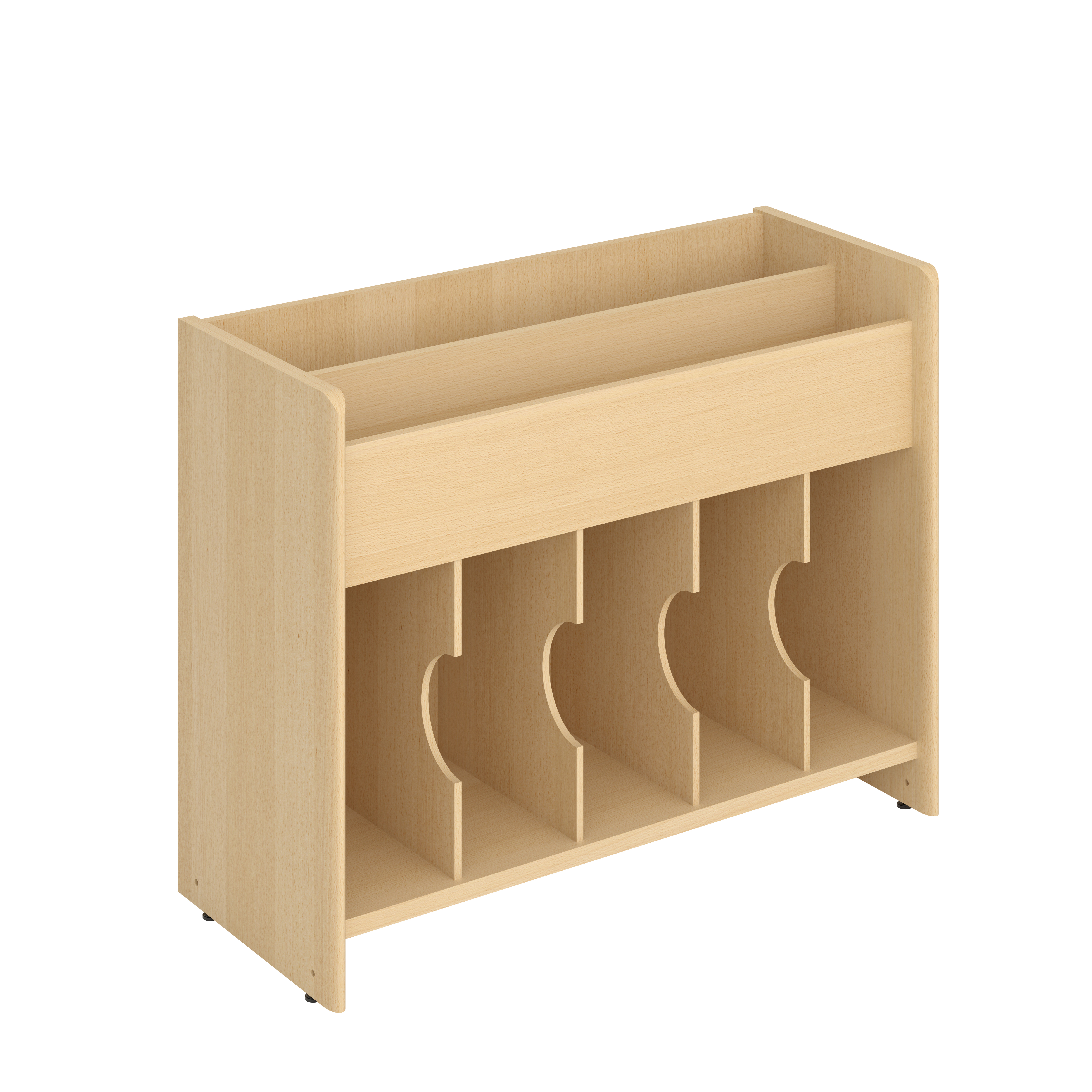 Comporte 2 casiers pour la présentation et 5 casiers pour le rangement.