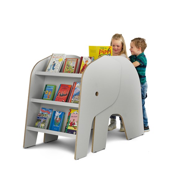 Petit Elof aide avec la charge! Elof est une version plus petite de Elna. Il aime aussi être avec les enfants et il est heureux d'être nourris avec des livres (c'est permis!). Tablettes pour exposer des livres de face (le tronc) Selon la taille des livres choisis la défense d'Elof peut être équipé de trois étagères ( peuvent être ajustées)