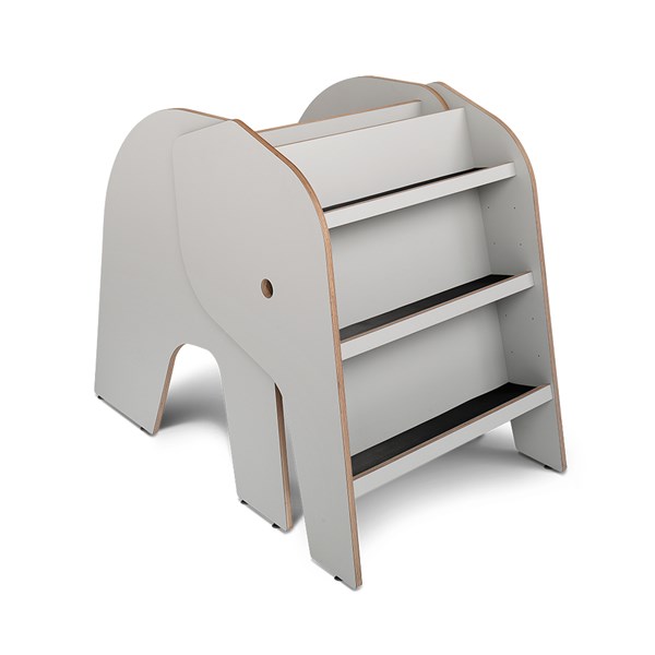 Petit Elof aide avec la charge! Elof est une version plus petite de Elna. Il aime aussi être avec les enfants et il est heureux d'être nourris avec des livres (c'est permis!). Tablettes pour exposer des livres de face (le tronc) Selon la taille des livres choisis la défense d'Elof peut être équipé de trois étagères ( peuvent être ajustées)