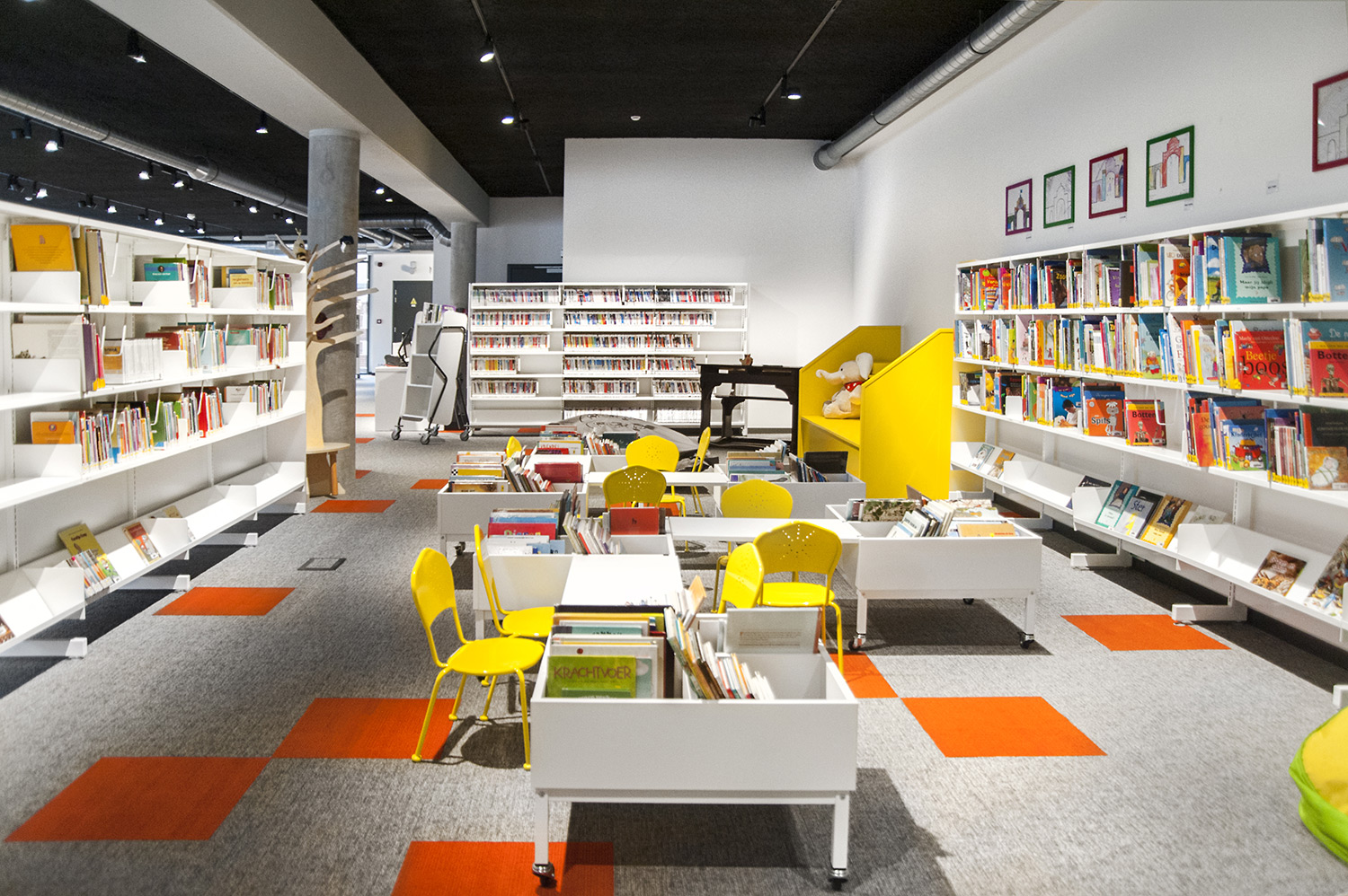 Le bac à albums possède un tapis intérieur en caoutchouc strié qui permet de maintenir les livres en position verticale et de les empêcher de tomber. Roulettes disponibles sur demande.