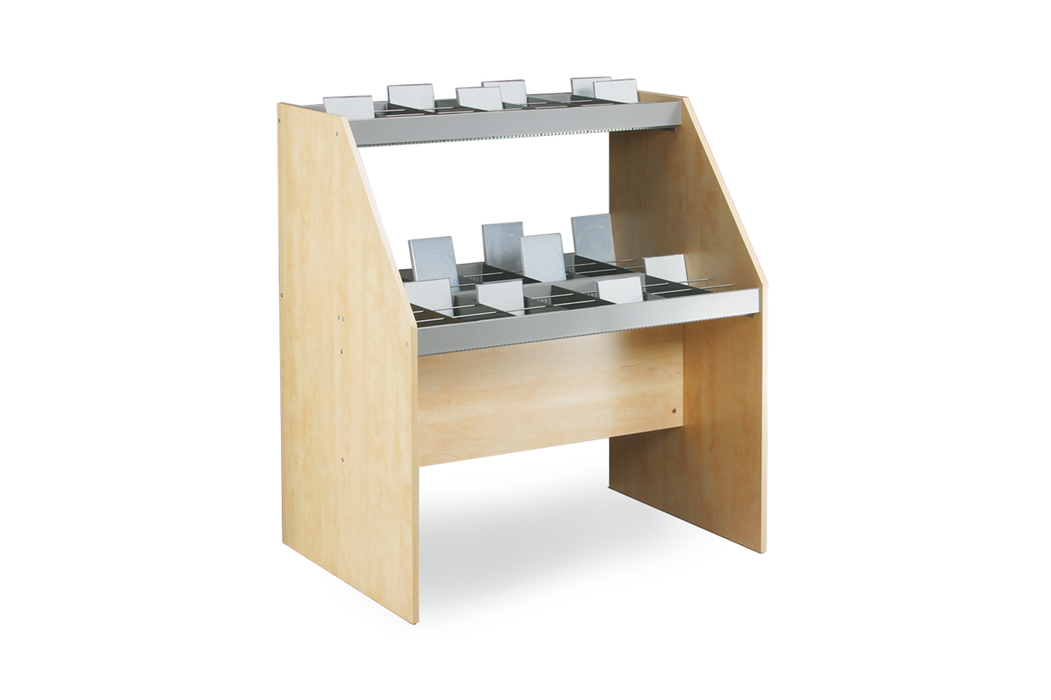 Présentez vos médias numériques de manière simple, mais imposante. L’esthétique épurée et les lignes droites du bac à médias audiovisuels en bois Radix conviennent à la plupart des bibliothèques et permettent de multiples combinaisons. Le bac à médias est disponible en unité simple ou double face, comme élément autonome ou extension, ainsi que dans trois hauteurs différentes. De plus, l’option simple face est disponible en modèle à deux étages pour la présentation d’un volume plus important de médias.