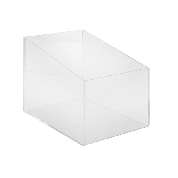 Bac de présentation fonctionnel et chic avec face avant rabaissée pour la consultation.