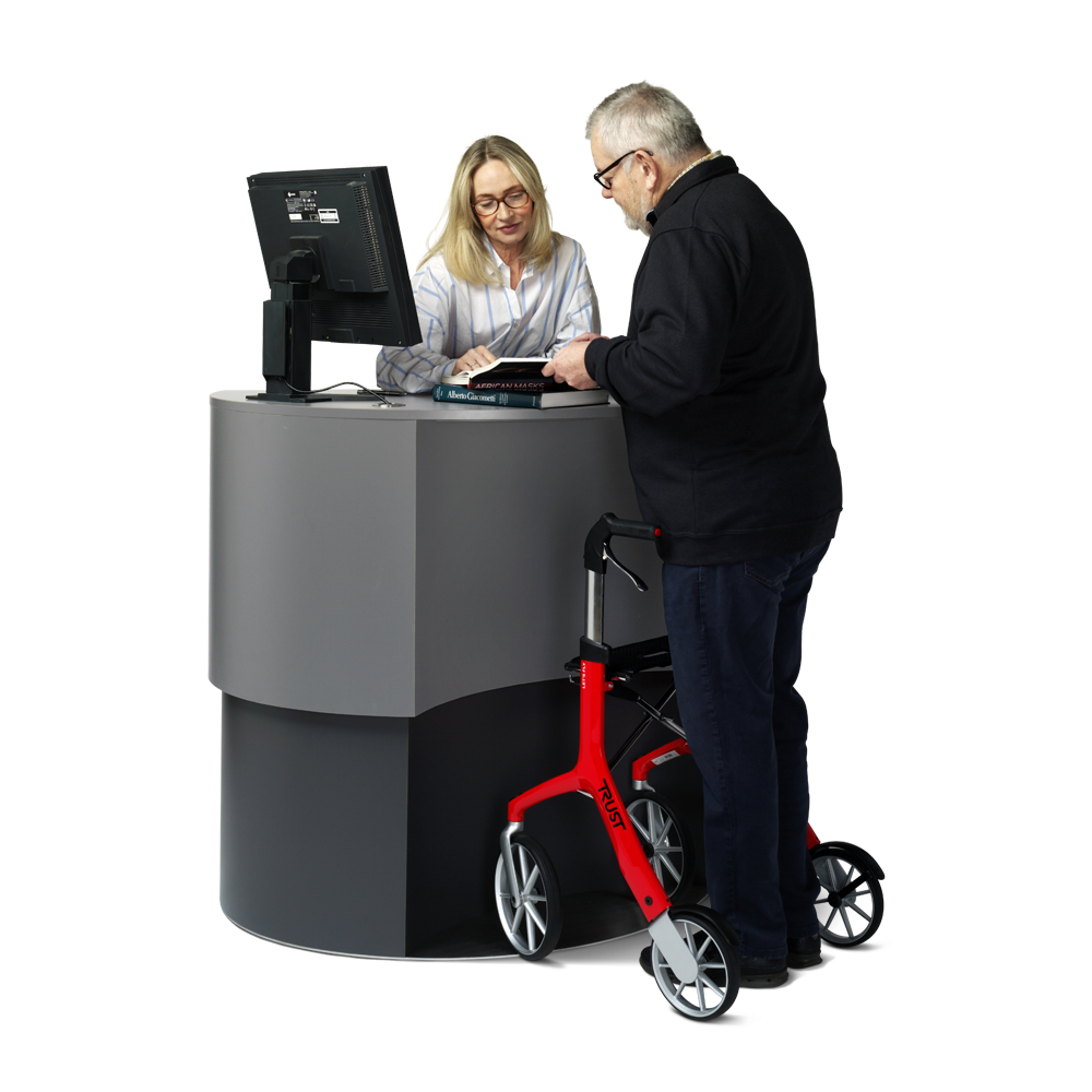 Idéal pour les petites et grandes bibliothèques comme point d’information, poste de consultation ou banque d’accueil.