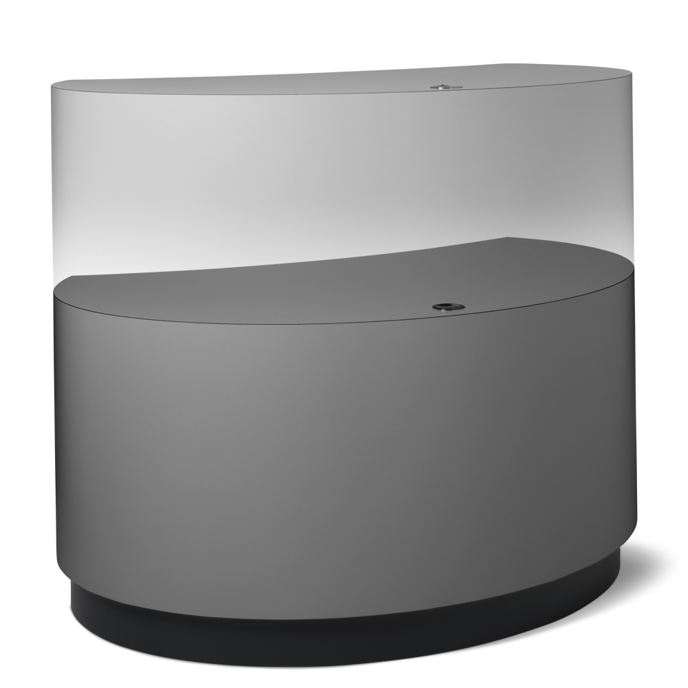 Info Pod doté d’un plan de travail de plus grandes dimensions. Elle sont réglables en hauteur et parfaites comme points d’information ou postes de consultation dans