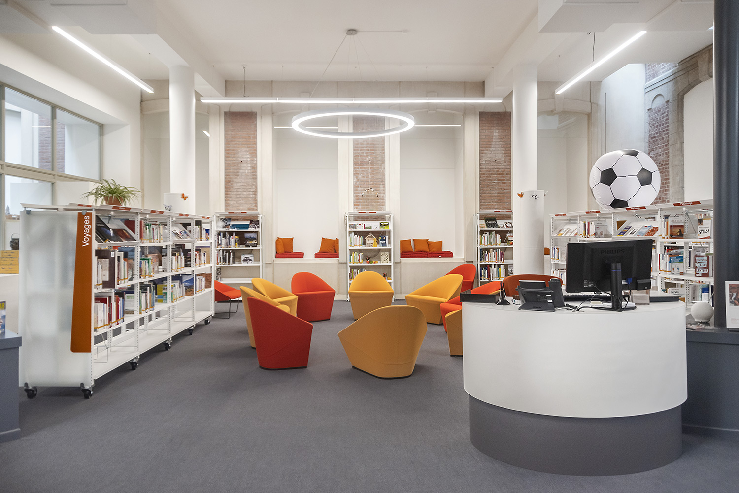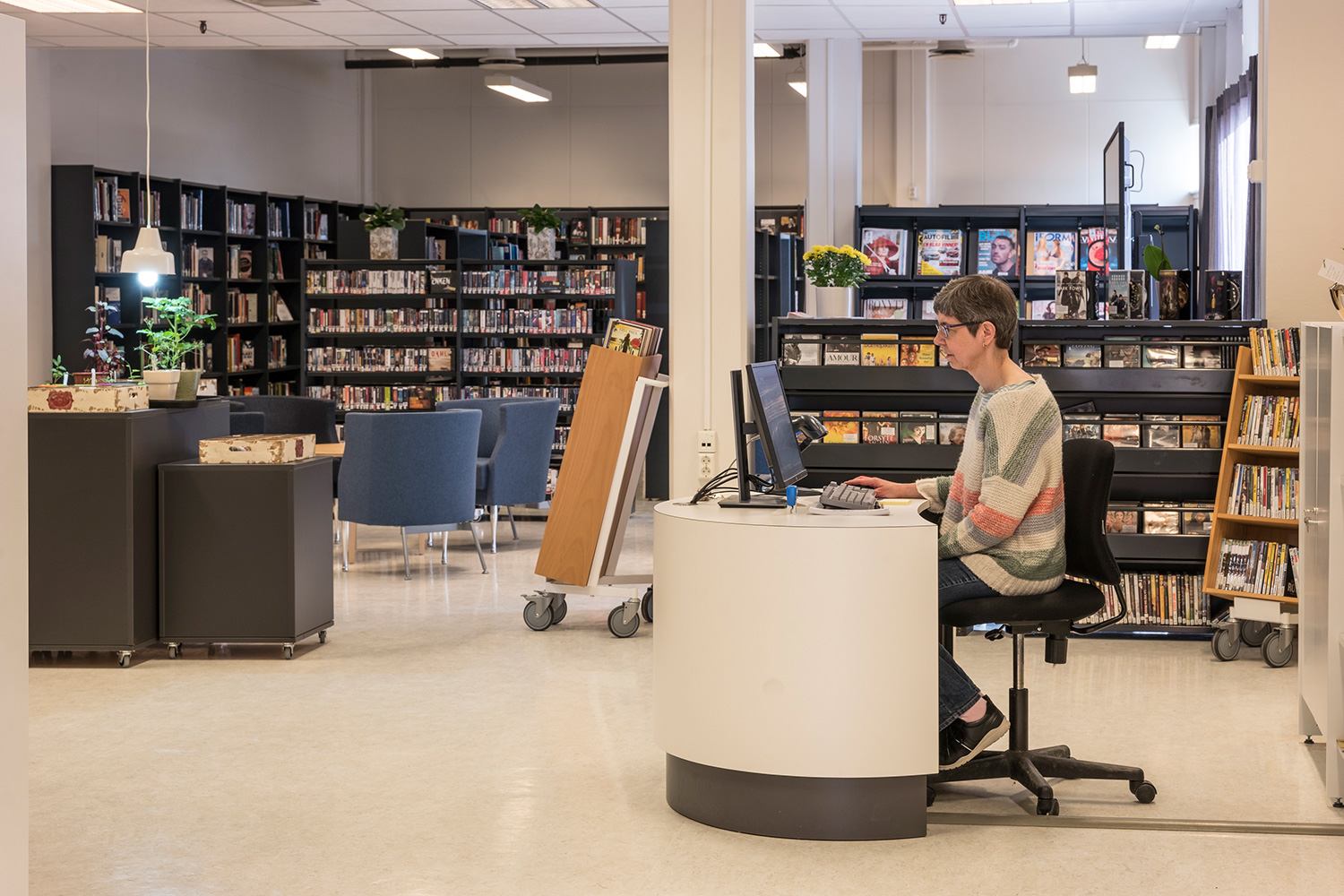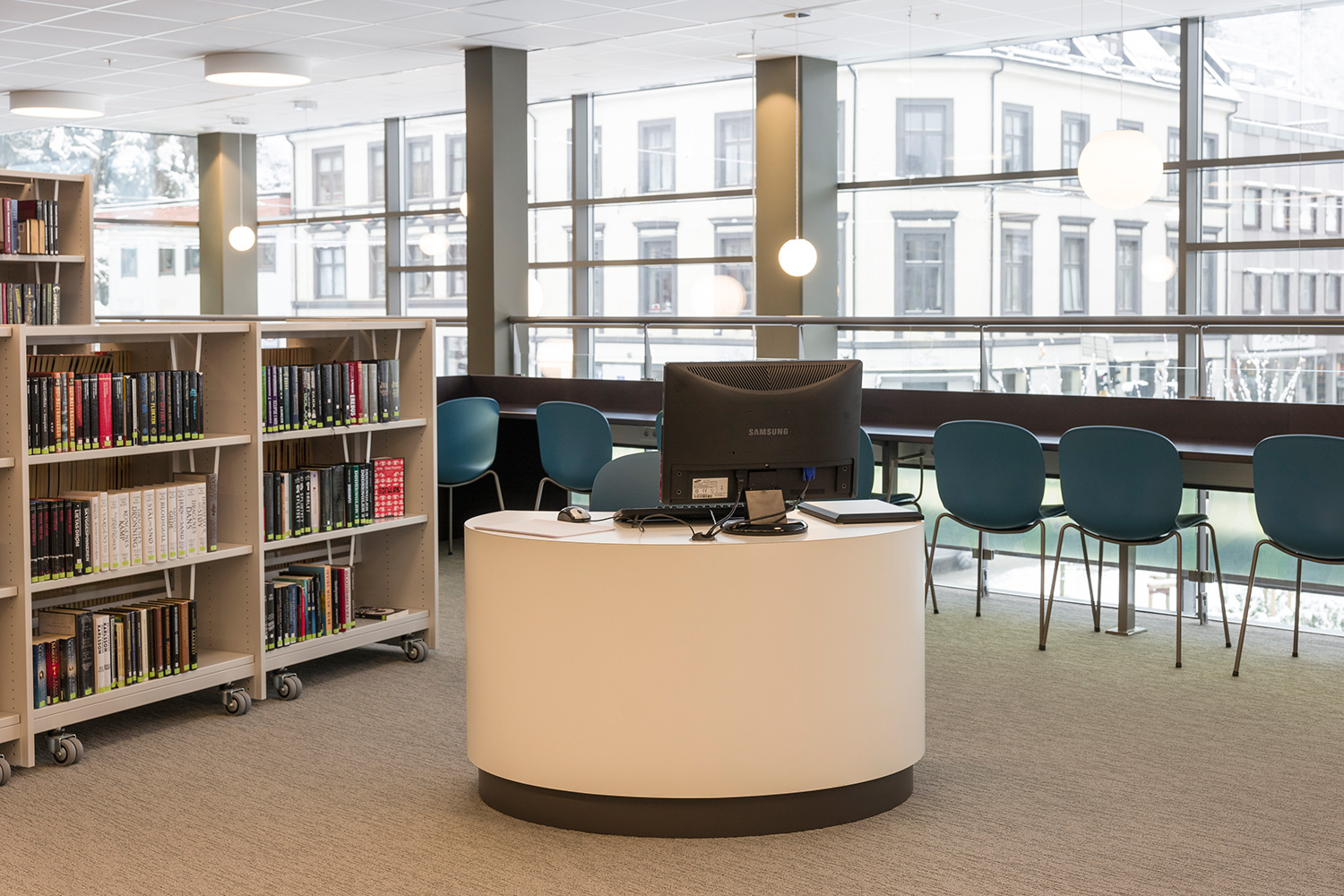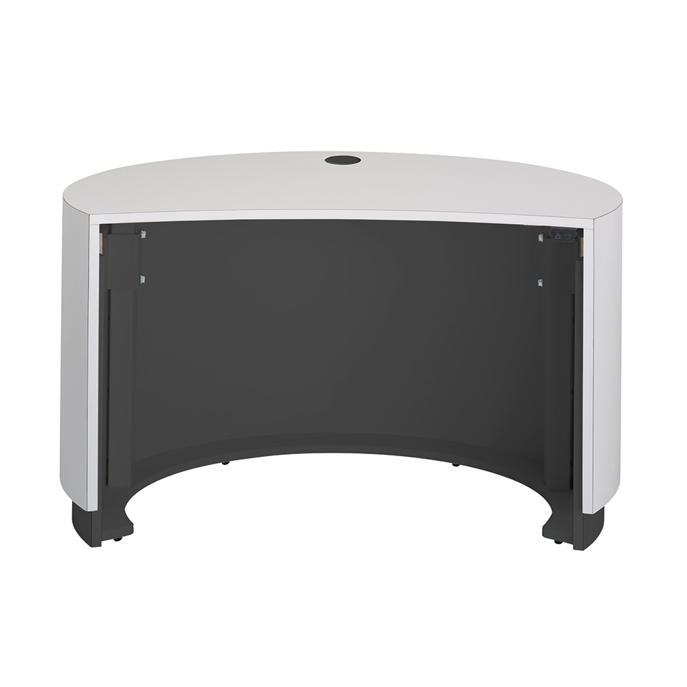 L’Info Pod est élégant, fonctionnel et compact avec une forme ovale. Bonne accessibilité à cause de la hauteur réglable électriquement. Les plans de travail sont équipés de passages de câbles pratiques. Pieds réglables et jeux de roulettes fournis. Idéal pour les petites et grandes bibliothèques comme point d’information, poste de consultation ou banque d’accueil.