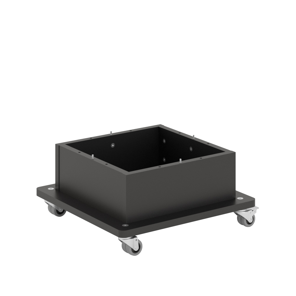 La base est construite de manière à ce que la hauteur de la tour prévue avec base et celle de la version standard sans roues soient identiques.