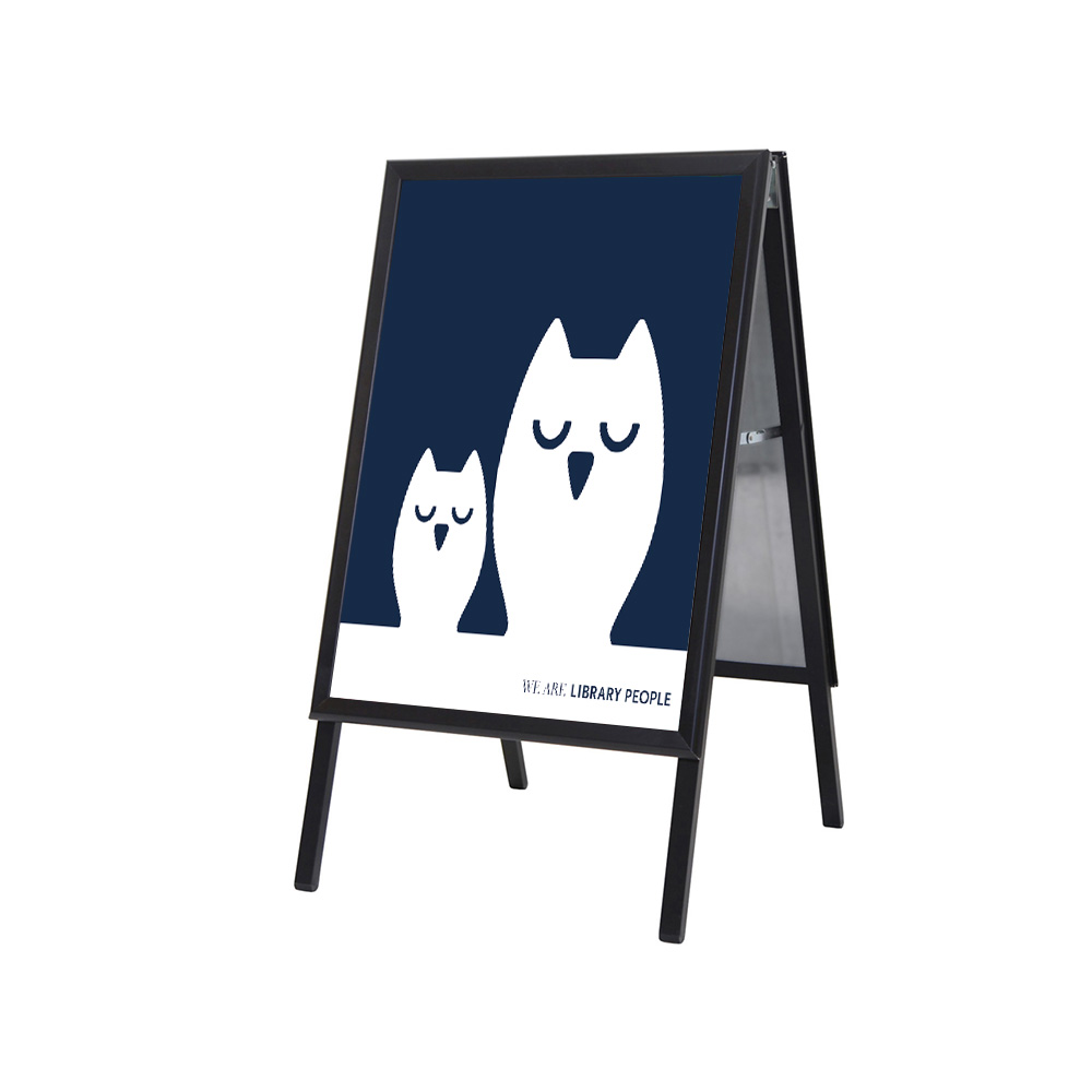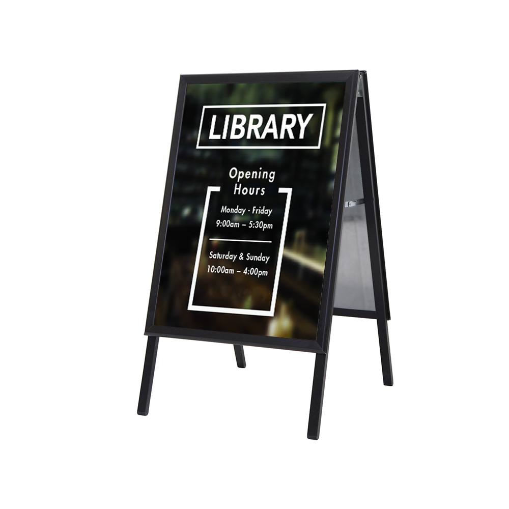 L'enseigne est fabriquée à partir d'un profilé en aluminium anodisé noir de 32 mm durable avec une plaque arrière en acier galvanisé, assurant une longue durée de vie. Avec un poids de seulement 4 kg, l'enseigne doit être sécurisée avec des sacs de sable ou autre lorsque le vent souffle.