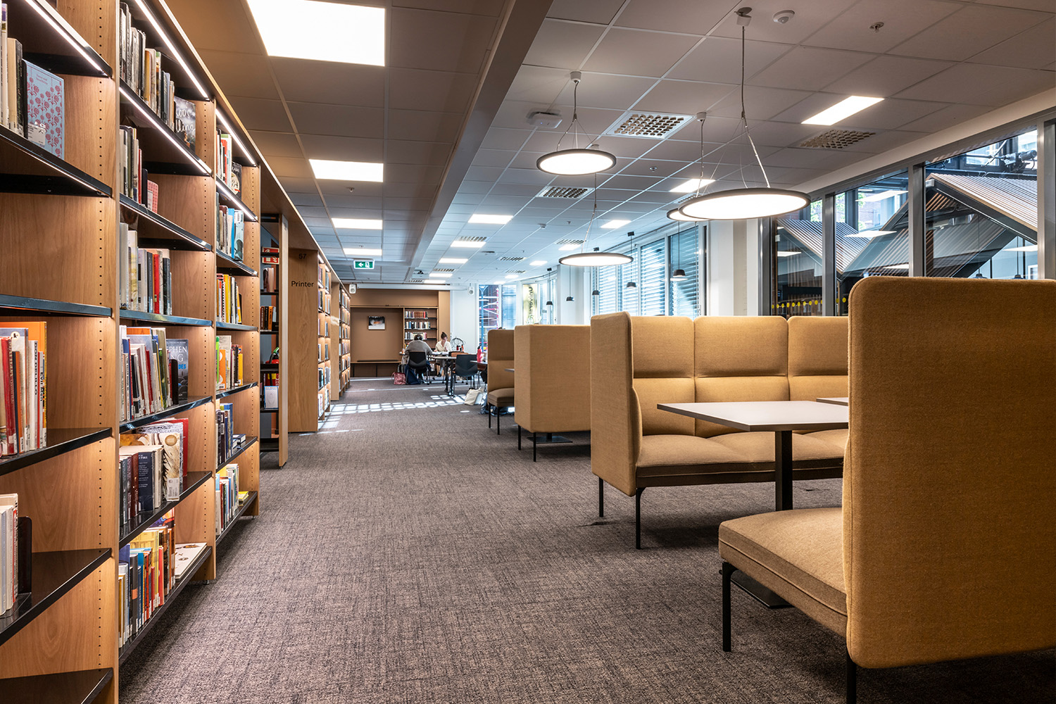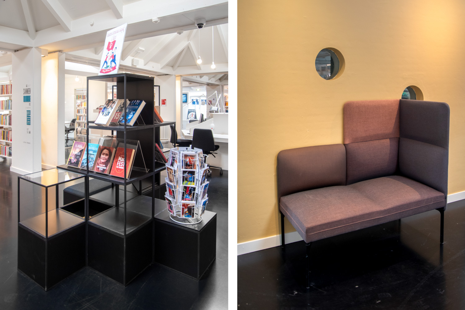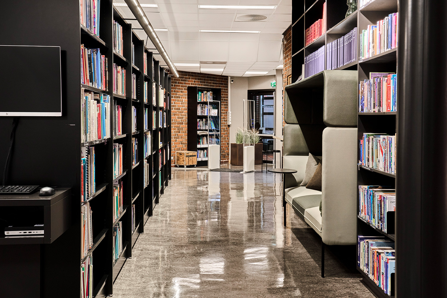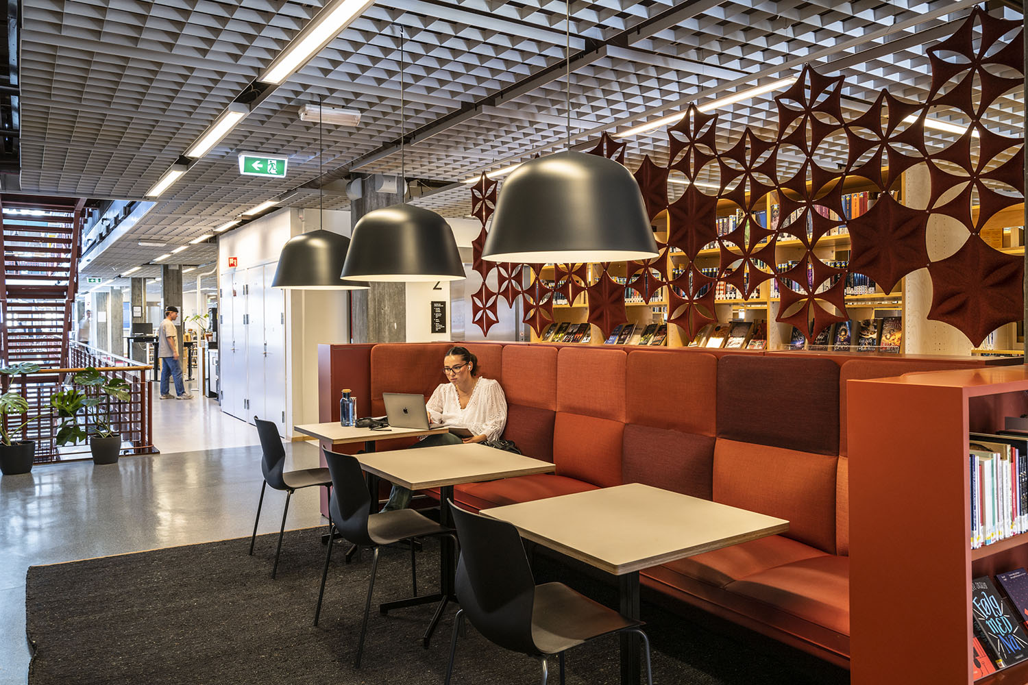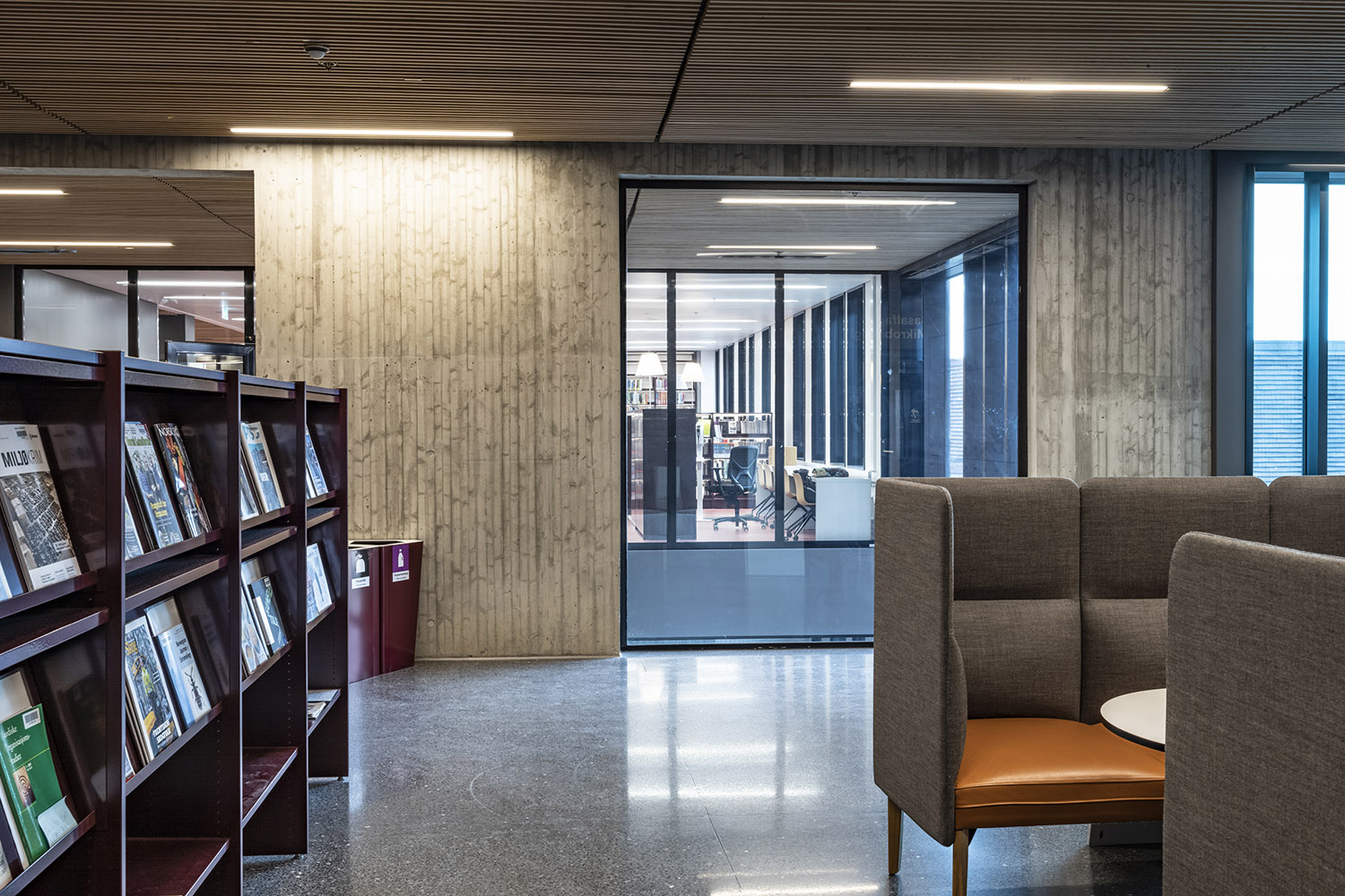 La série Senso tient compte des défis acoustiques que vous pouvez rencontrer dans la bibliothèque. Ses différentes hauteurs de dossier contribuent à atténuer et absorber le bruit ambiant. Il est aussi possible de choisir une structure avec des lattes en chêne qui permettent de cloisonner la pièce en espace de calme, de détente ou de discussion.