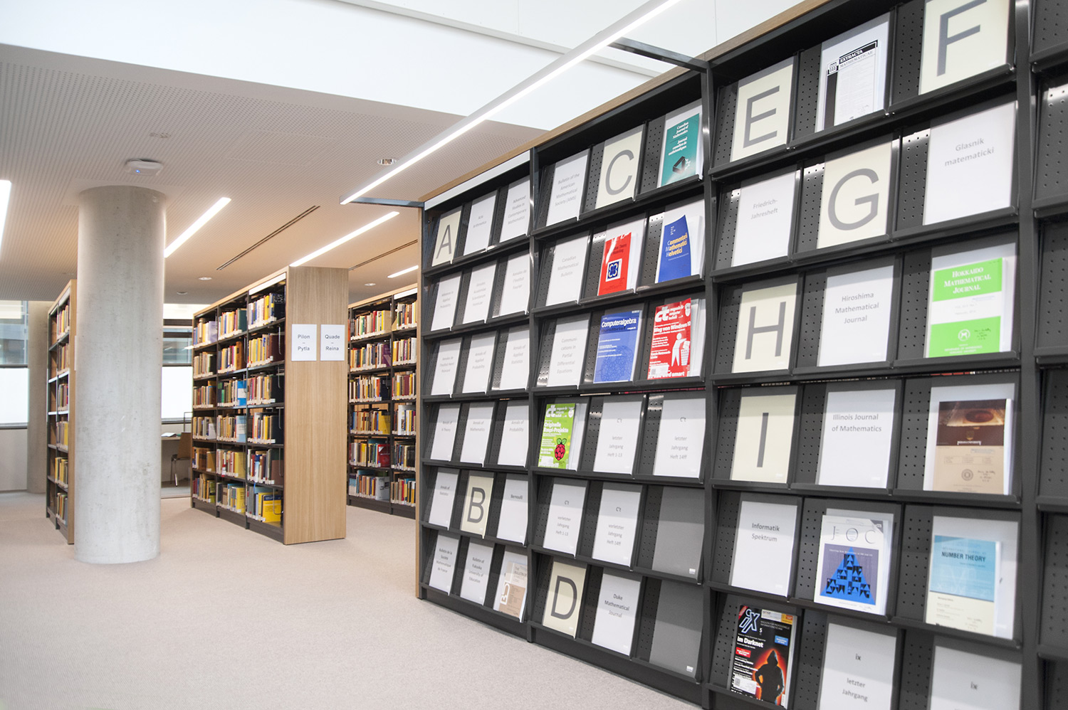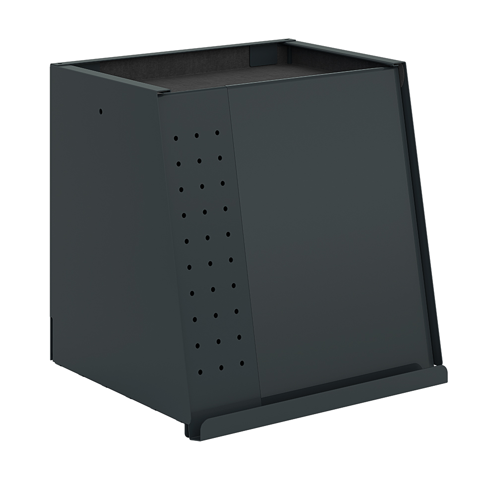 Boîte pratique pour étagère d’une profondeur maximale de 250 mm. Montre les périodiques avec la couverture tournée vers le visiteur.