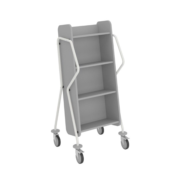 Chariot à 4 étagères fixes généreusement espacées et facilement inclinables. Convient aussi pour les livres de grand format.