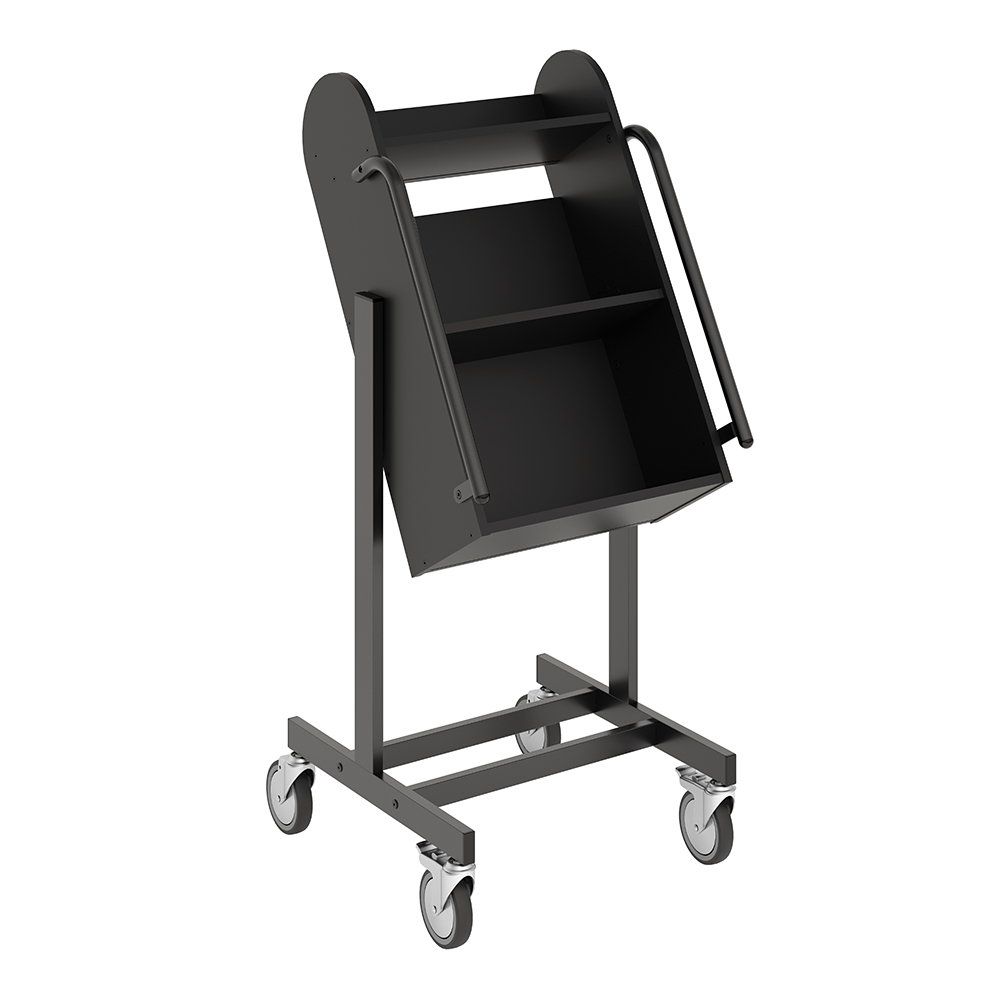 Chariot simple-face, caisson incliné avec 3 tablettes. à trois étagères, dont celle du milieu amovible.
