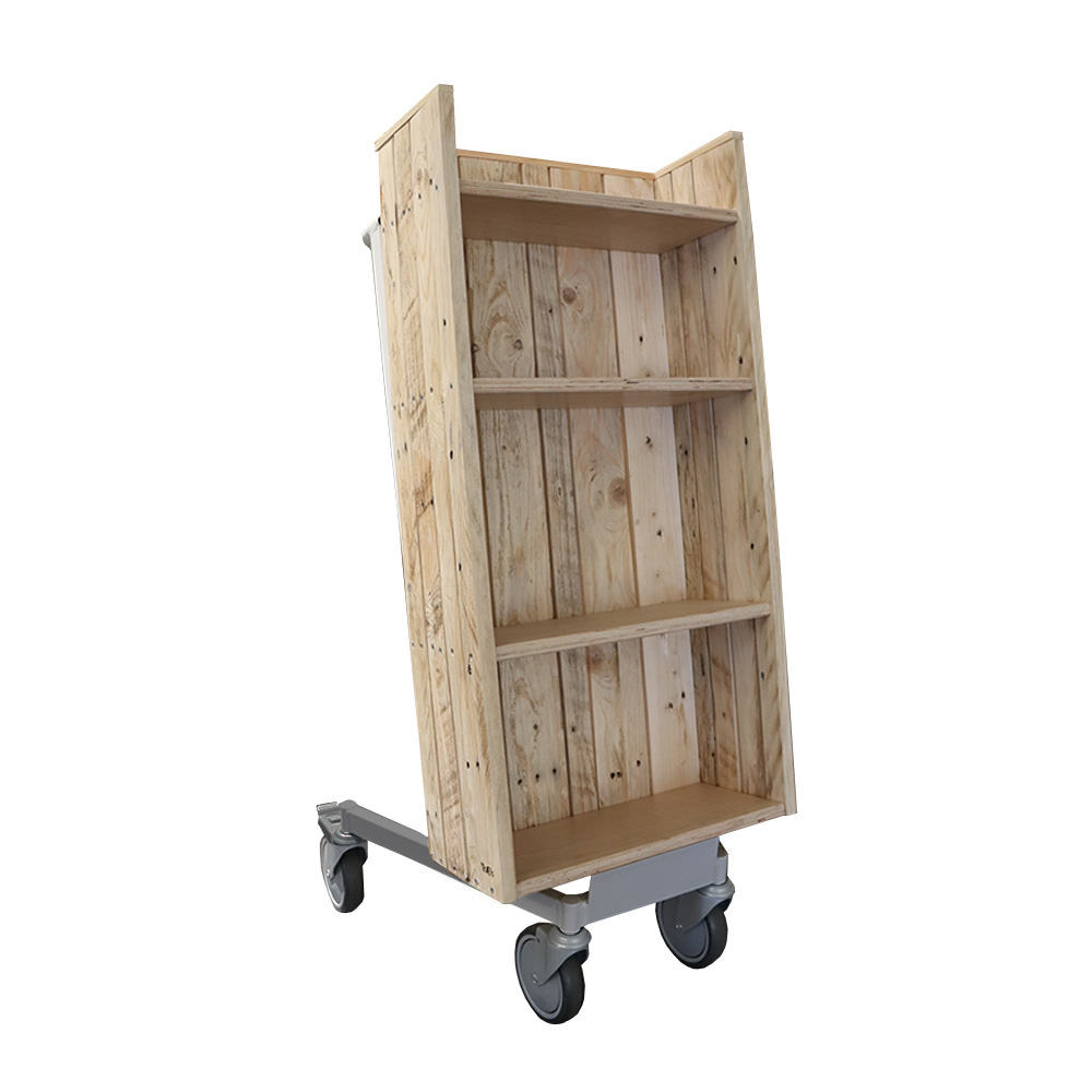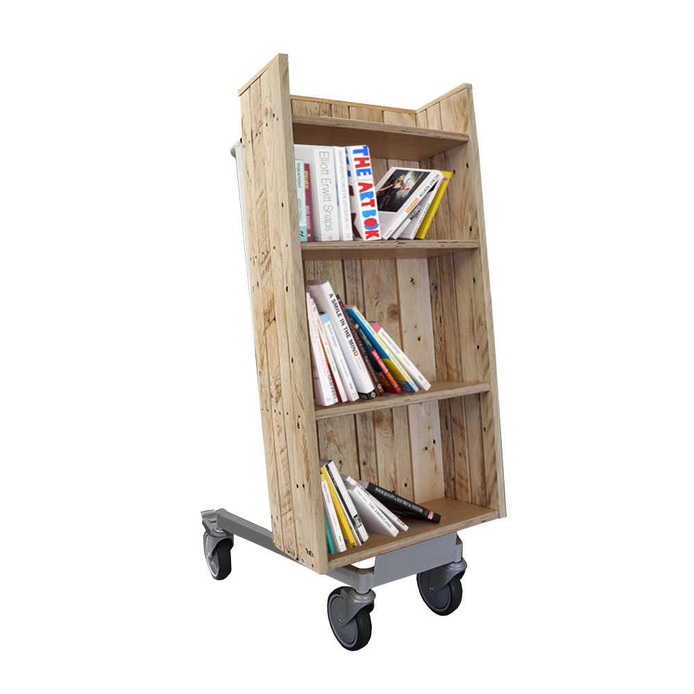 Ce chariot à livres simple face, pratique et facile à utiliser, est équipé de quatre étagères fixes.