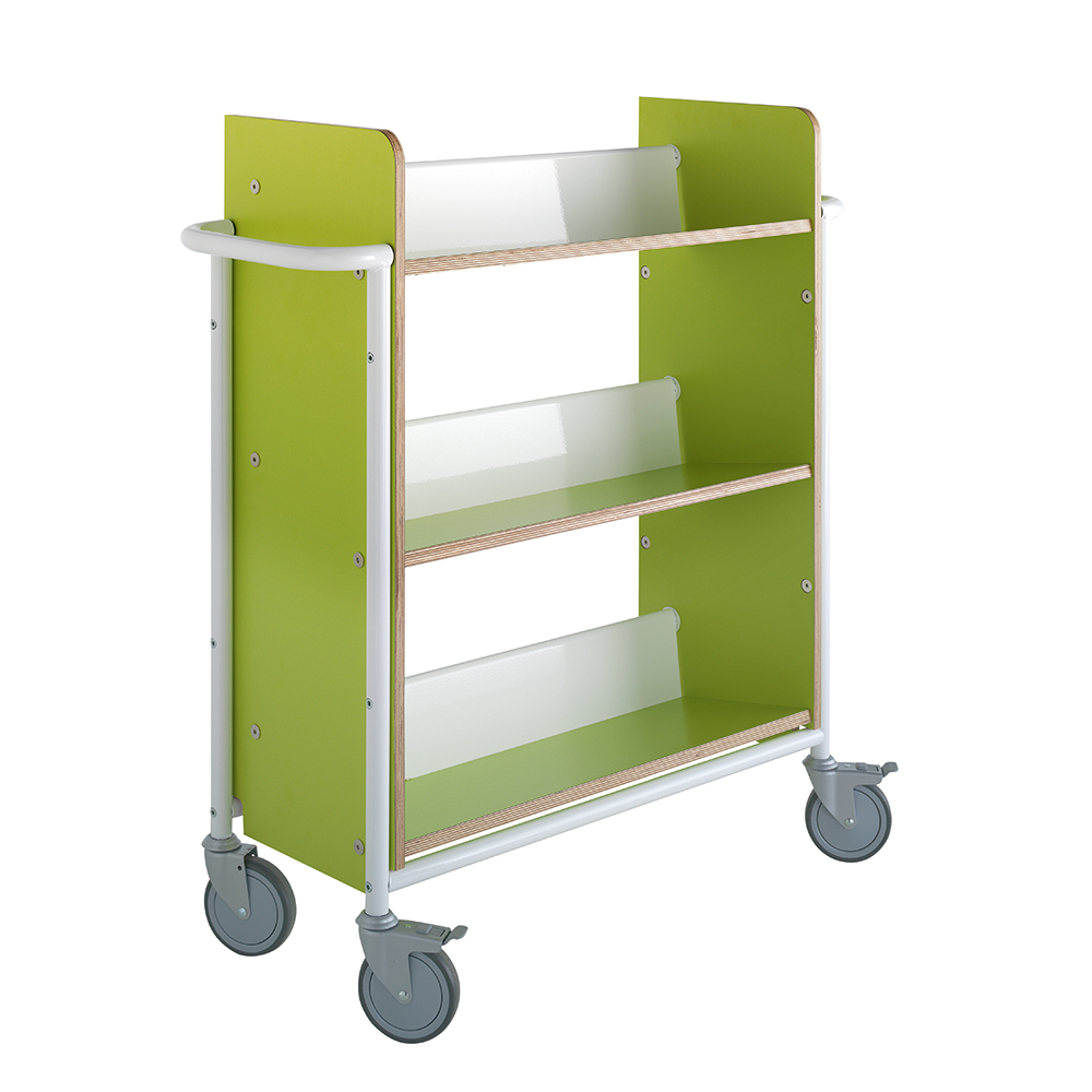 Un chariot simple face fonctionnel à trois tablettes inversées offrant une grande profondeur et un bel espacment entre elles.