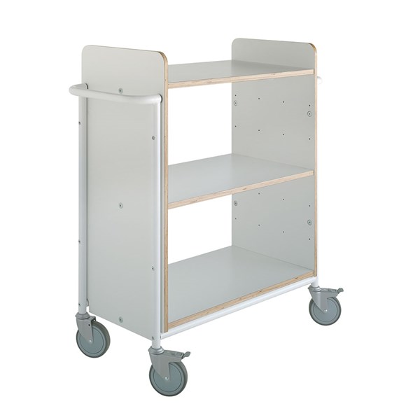Chariot double face avec trois étagères planes bien dimensionnées.
