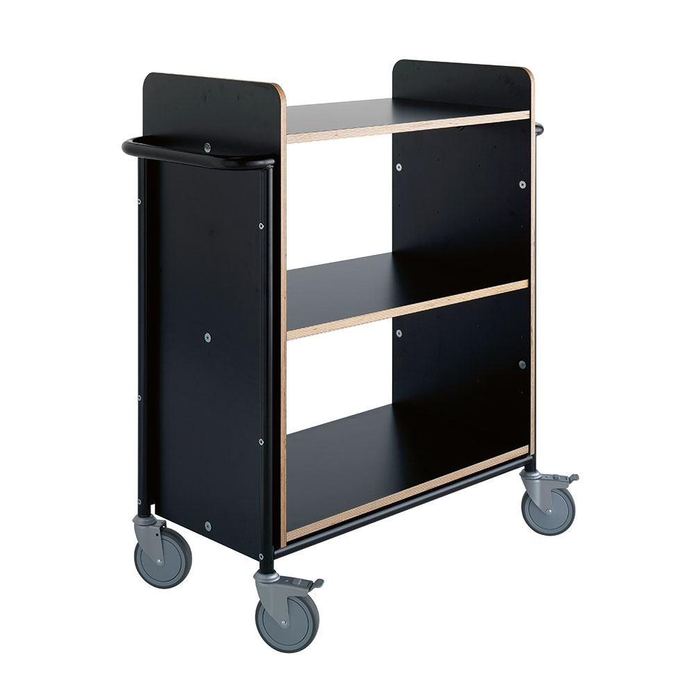 Chariot double face avec trois étagères planes bien dimensionnées.