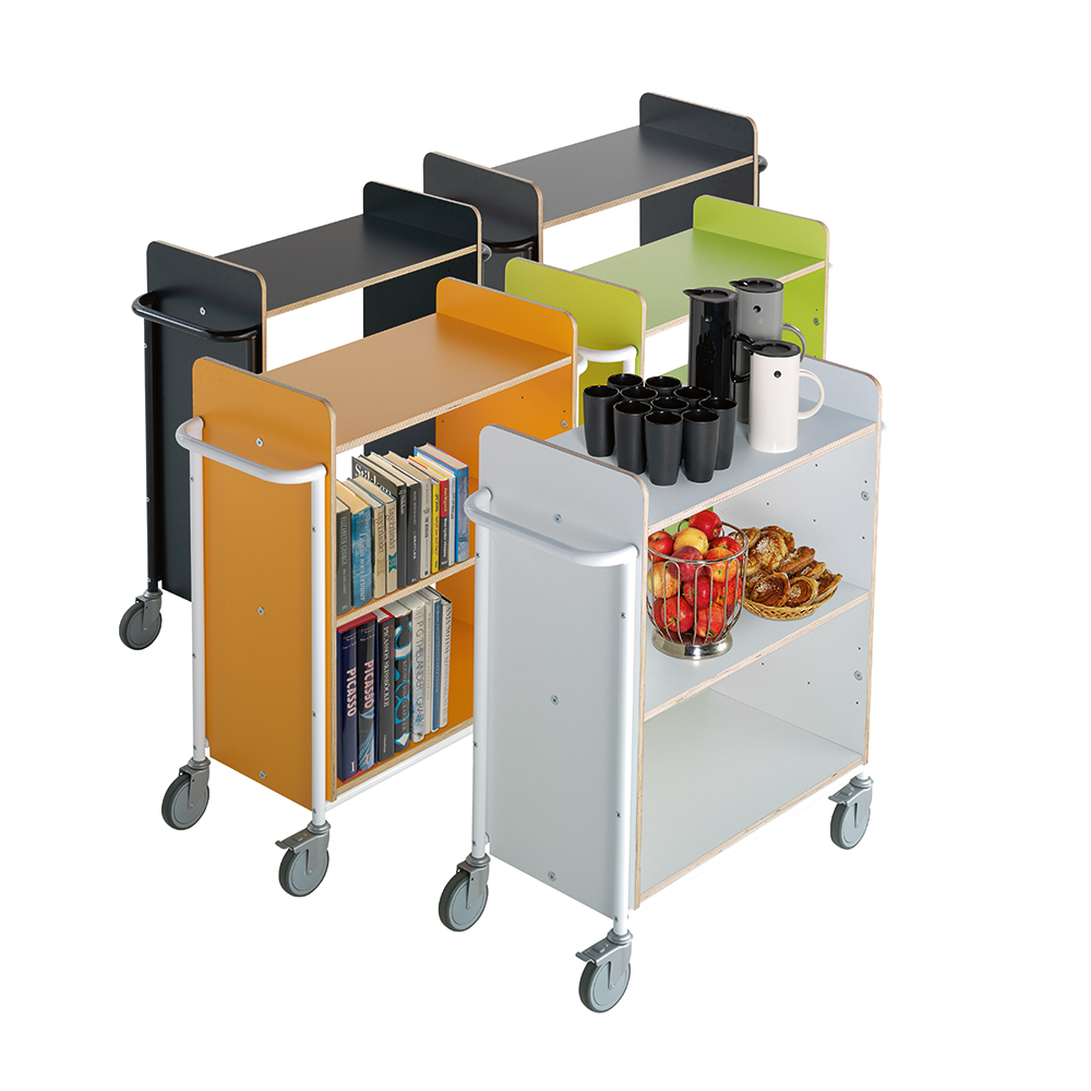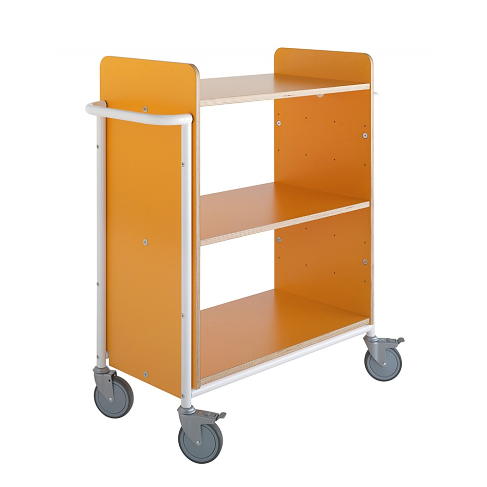 Chariot double face avec trois étagères planes bien dimensionnées.
