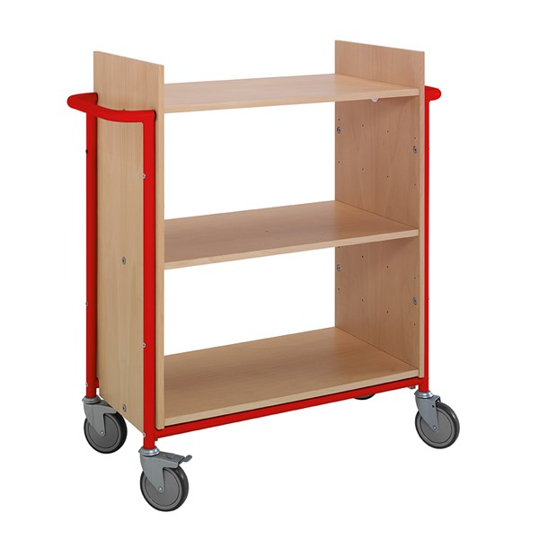 Chariot double face avec trois étagères planes bien dimensionnées.