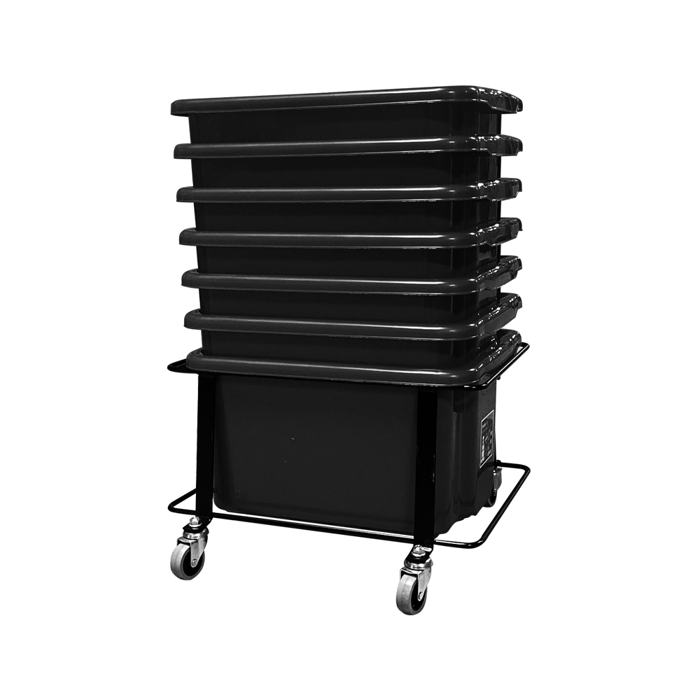 Facile à transporter, il peut supporter plusieurs bacs empilés.
