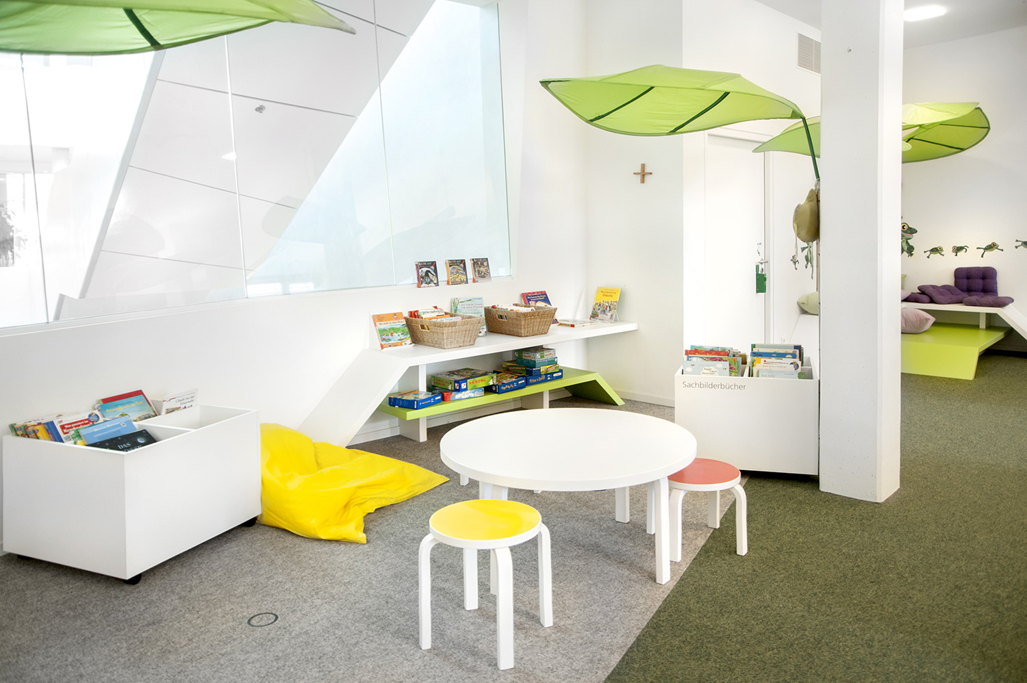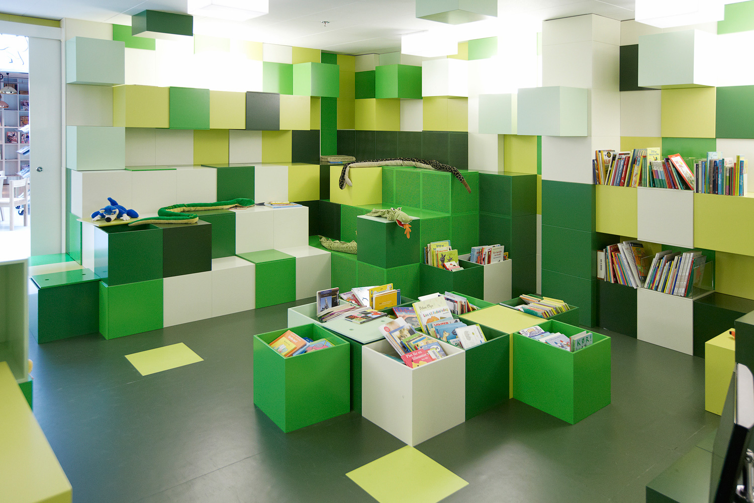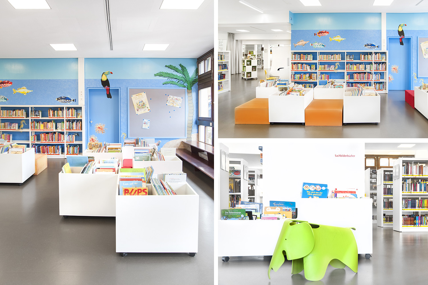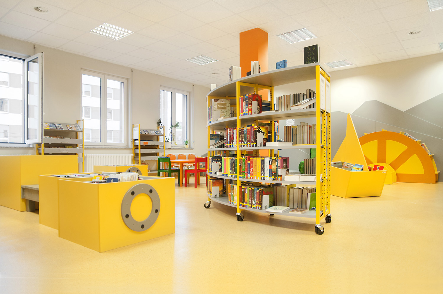 Si l’on veut inciter les plus petits à revenir régulièrement pour apprendre et jouer, il est important que la bibliothèque pour enfants soit colorée et captivante. Pour nous, une bibliothèque pour enfants constitue une opportunité de créer un monde magique de découvertes en stimulant leur imagination grâce à l’utilisation de couleurs vives, d’illustrations amusantes et d’un mobilier adapté.