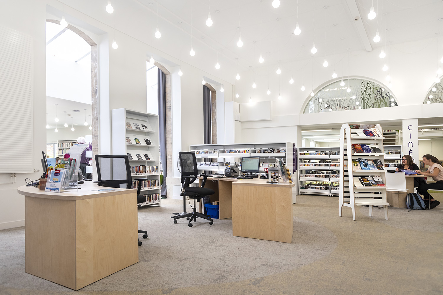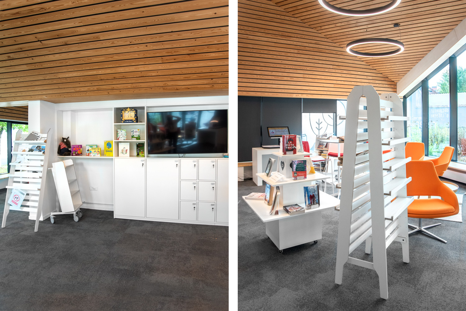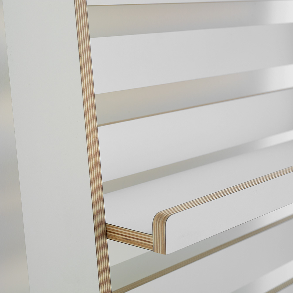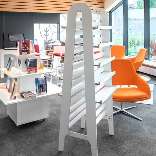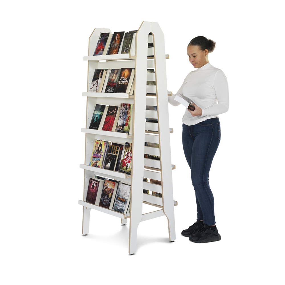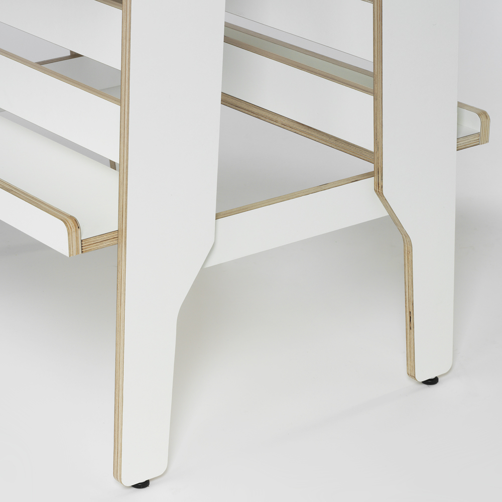 Nous utilisons du contreplaqué de bouleau – ici avec les bords visibles – pour créer une surface à la fois durable et robuste. Idéal pour les environnements de bibliothèque les plus exigeants !