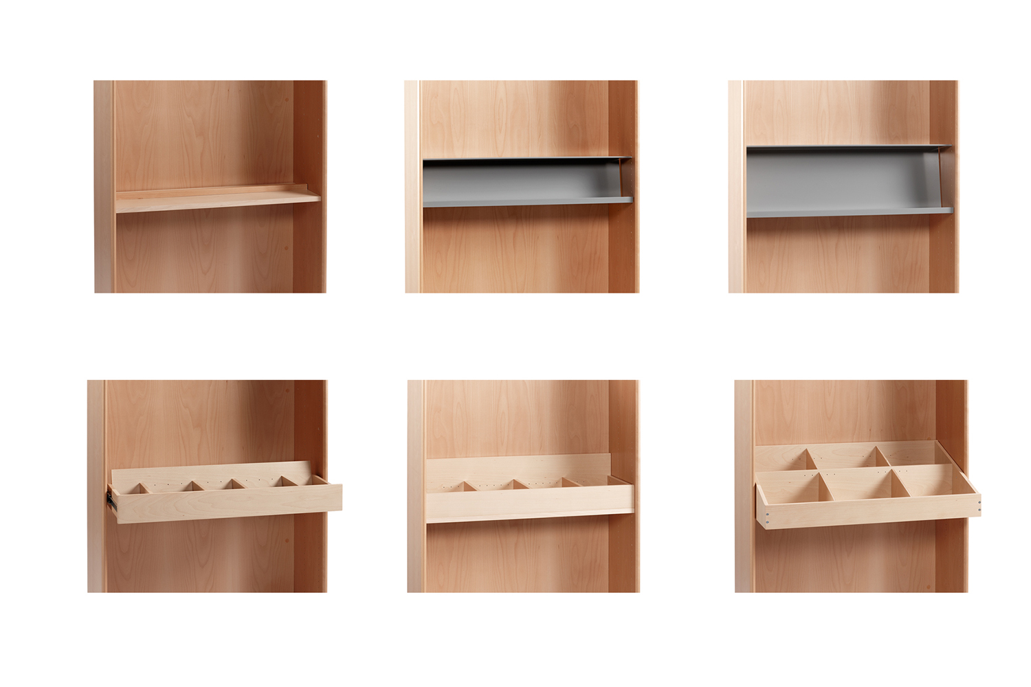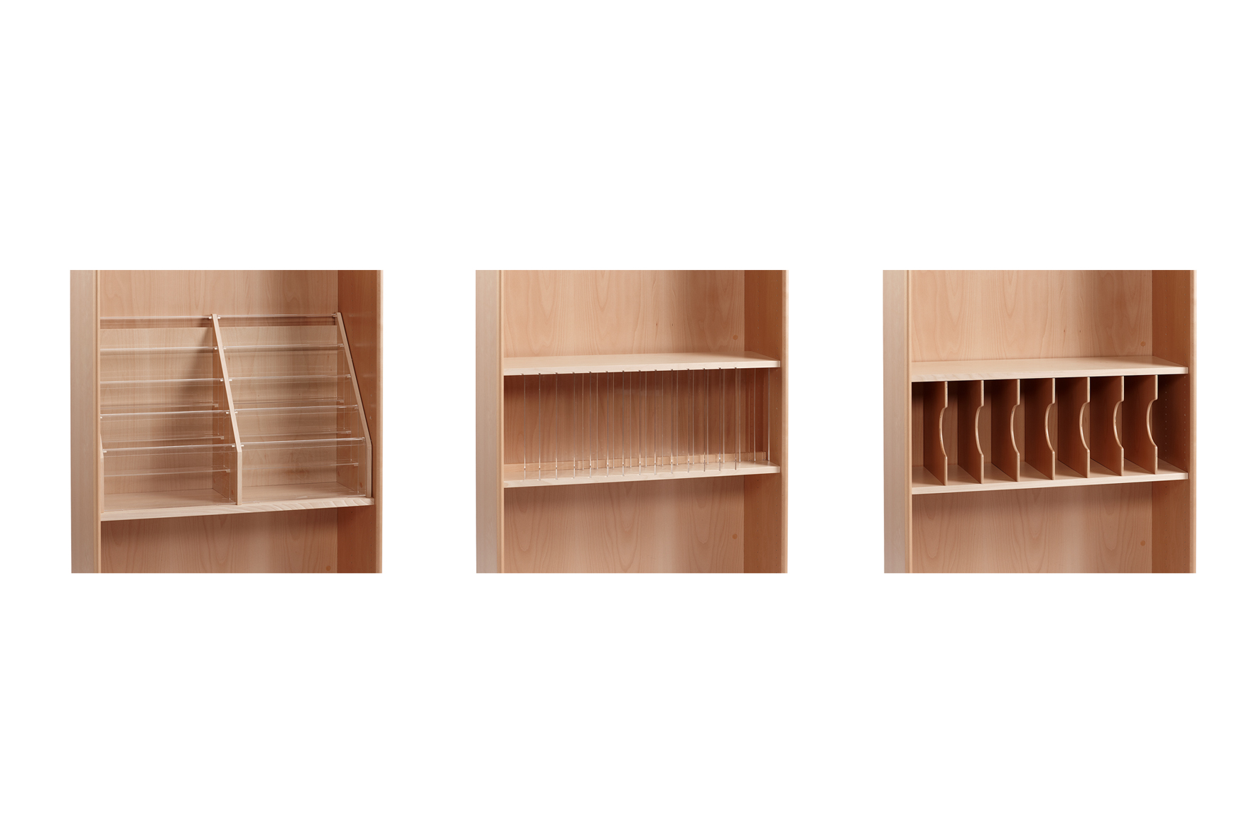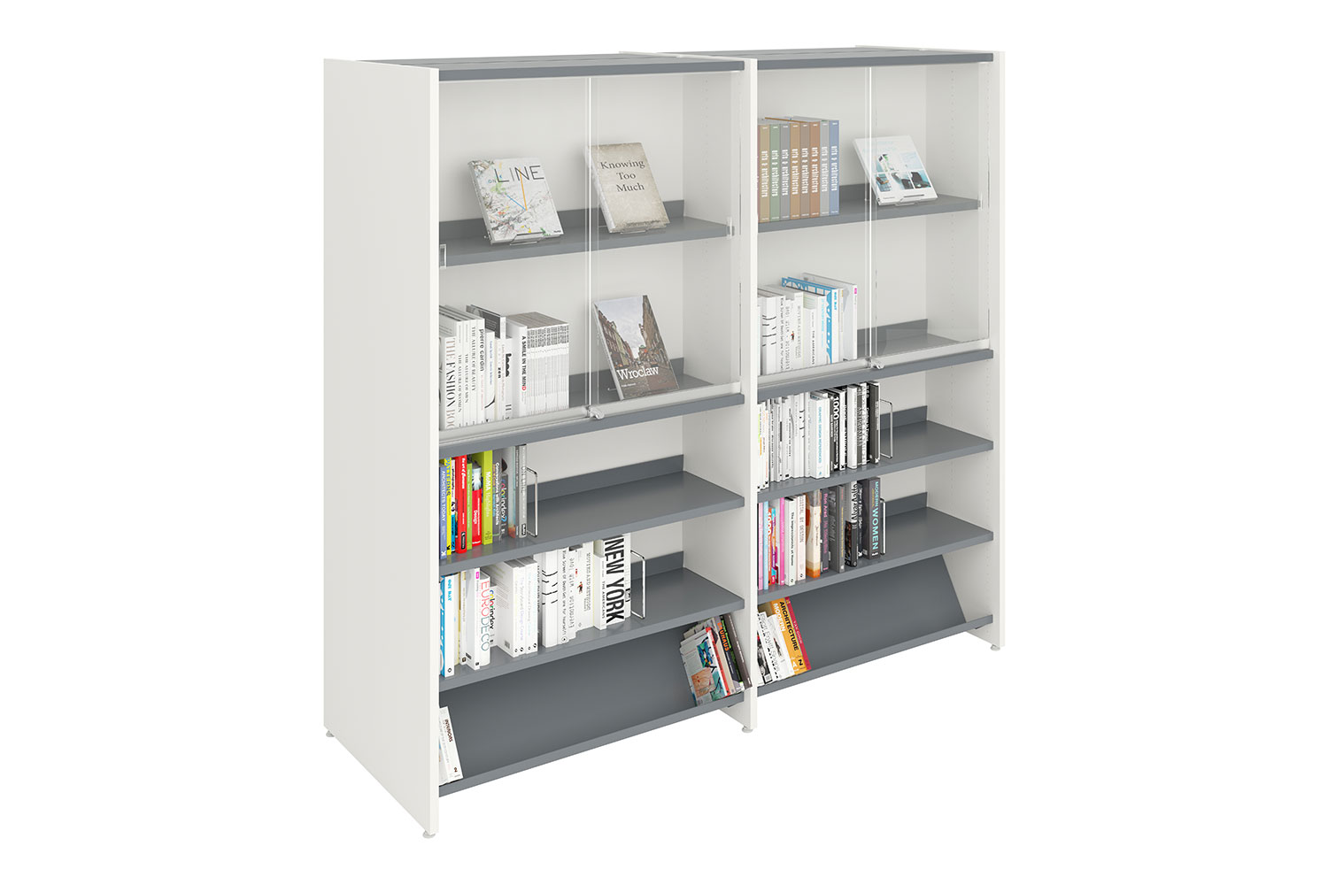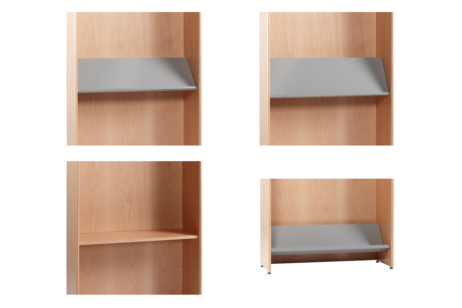 Ce système constitue la base de vos rayonnages personnalisés répondant aux exigences de votre bibliothèque et des utilisateurs finaux, tant sur le plan esthétique que fonctionnel. Vous avez en effet la possibilité de remplacer les tablettes par d’autres éléments fonctionnels.