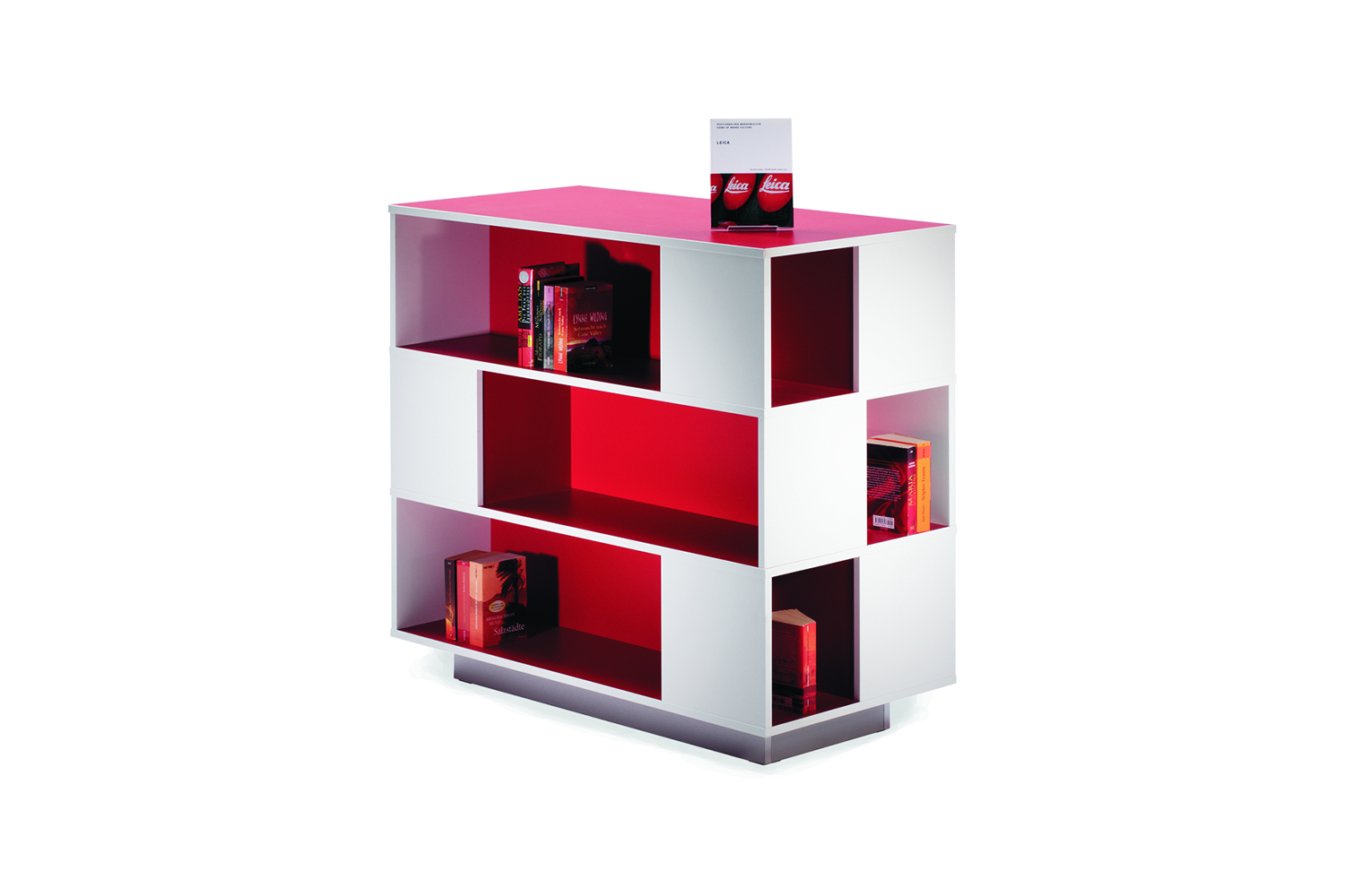 L’étagère à livres Labyrinth est articulée sur trois niveaux et permet le rangement d’environ 450 livres de poche. Elle est fournie d'un socle couleur inox ou quatre roulettes.
