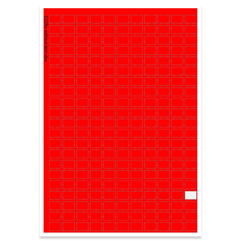 Étiquettes autocollantes prédécoupées, conditionnées en planches, avec texte optionnel (par exemple, pour un système de classification).