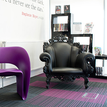 Grand fauteuil pour adultes et un cadre idéal pour raconter des histoires aux enfants.