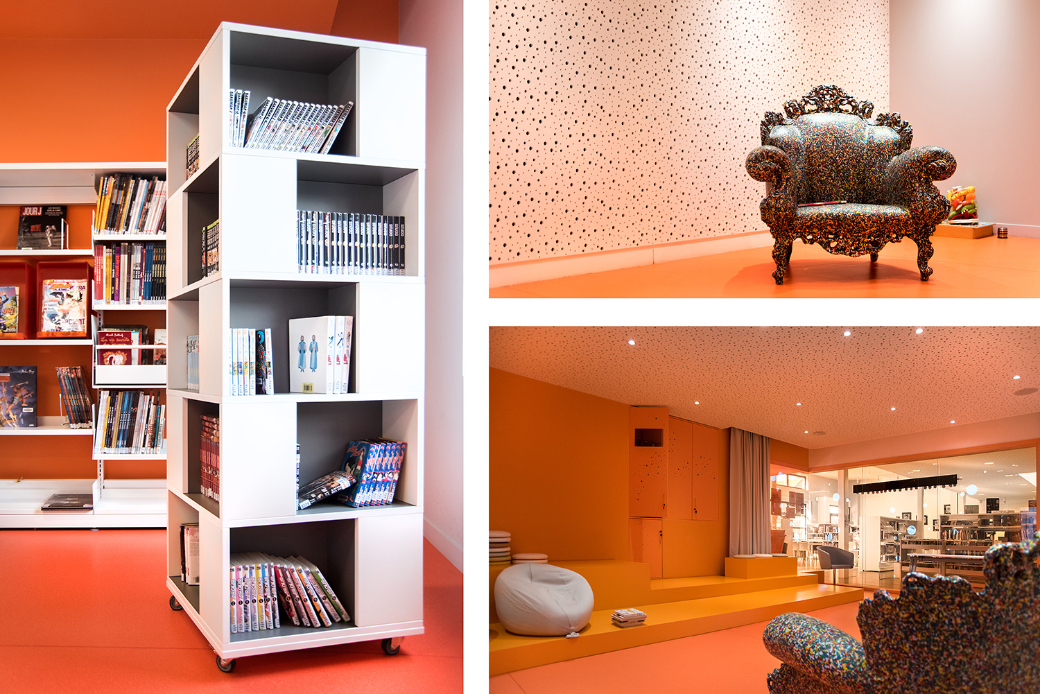 Grand fauteuil pour adultes et un cadre idéal pour raconter des histoires aux enfants.