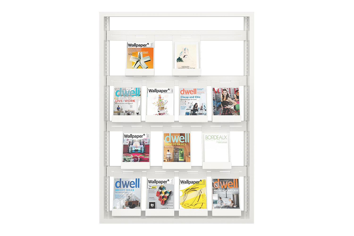 Le 60/30 sur crémaillères murales est une solution à la fois élégante et polyvalente pour mettre en valeur vos livres, magazines et autres objets.