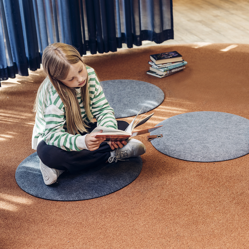 Coussin de sol en feutre résistant et dessous antidérapant. Il réduit l’acoustique dans les espaces enfants et encourage l’apprentissage et le jeu.