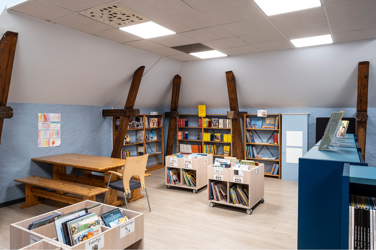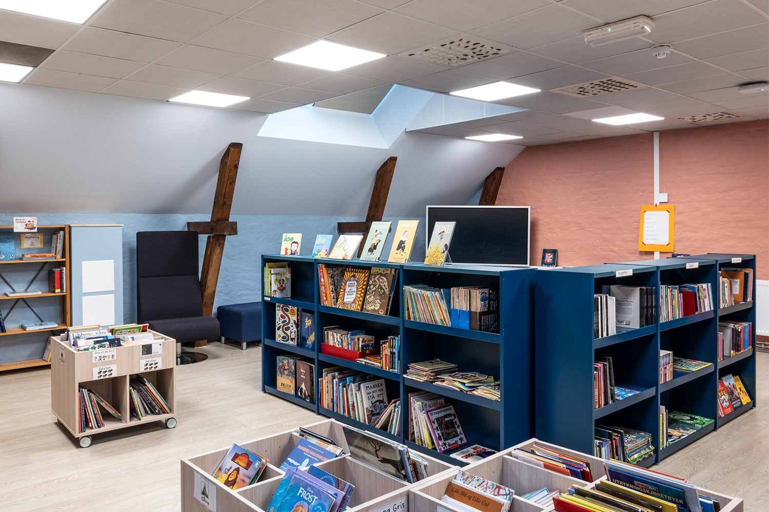 En janvier 2024, l’école de Vahl à Oslo a inauguré sa bibliothèque scolaire entièrement rénovée. Pensé comme un espace à la fois moderne et modulable, ce nouveau lieu s’inscrit dans une conception globale renouvelée. Grâce à de nouveaux systèmes de rayonnage, un design intérieur réfléchi et une organisation claire des différents espaces, la bibliothèque remplit désormais un double rôle : un lieu d’apprentissage et un lieu de rencontre, soutenant les activités pédagogiques ainsi qu’une utilisation en dehors des horaires scolaires.