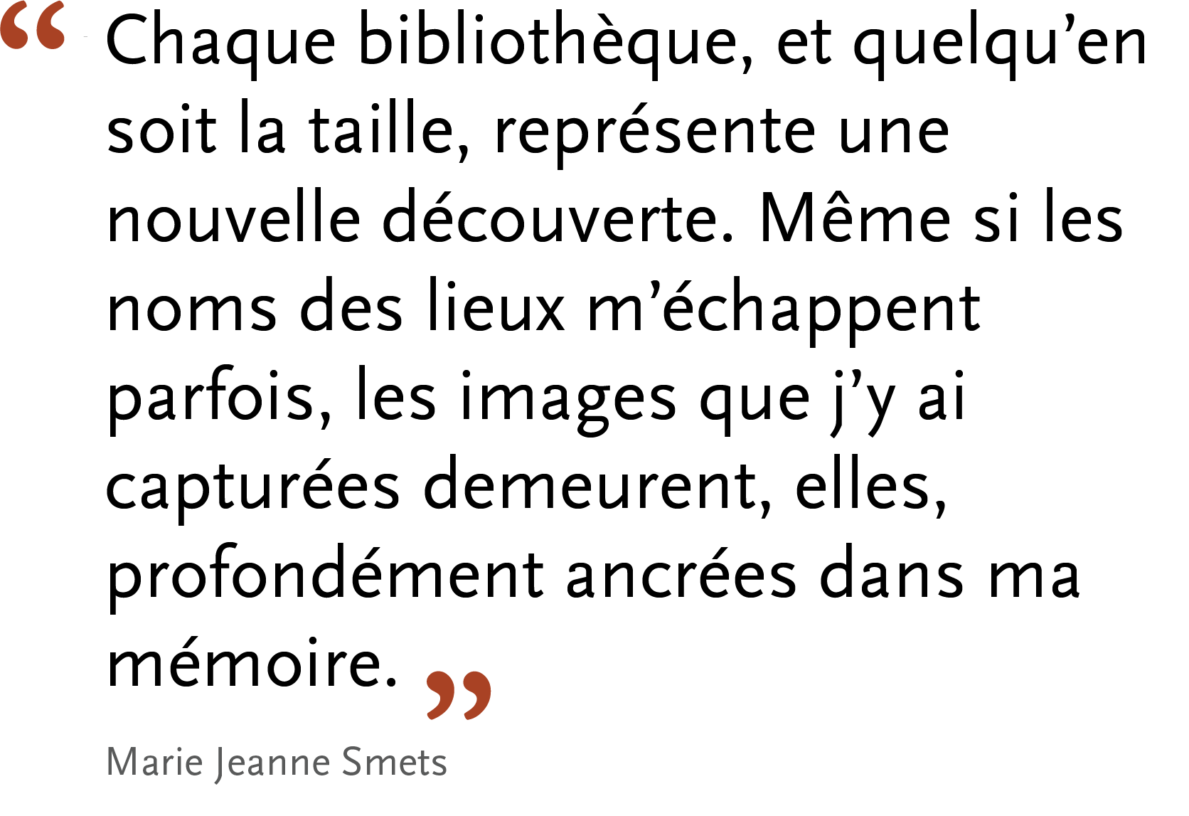 Après presque cinq décennies passées dans le monde des bibliothèques, toujours avec son appareil photo à la main, notre photographe de longue date, Marie Jeanne Smets, prend sa retraite.