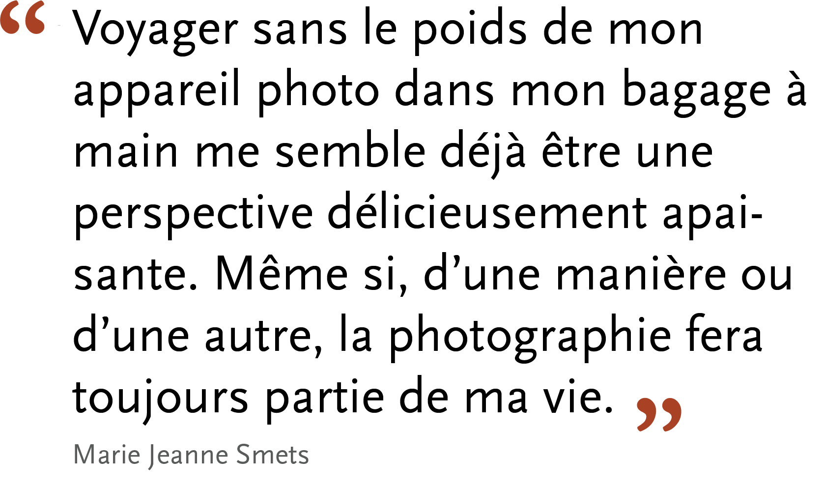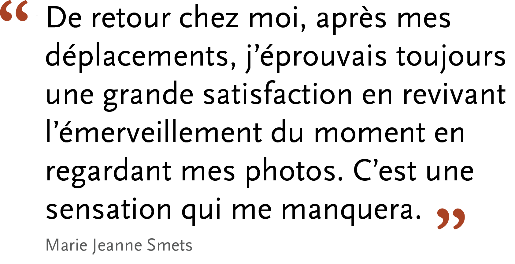 Après des milliers de photographies et passé d’innombrables heures sur les routes du monde, Marie Jeanne tourne la page d’un chapitre important de sa vie professionnelle. Sa passion pour la photographie, elle, demeure pleinement intacte.