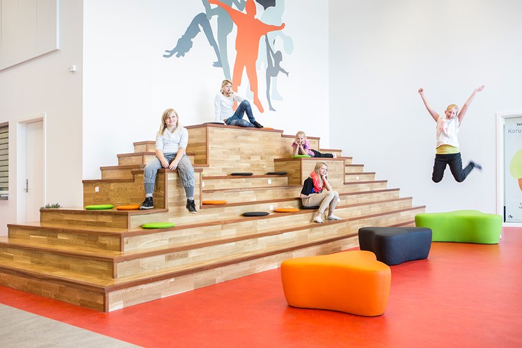 Lorsque le podium Verona est utilisé comme une scène, de nouvelles possibilités s’ouvrent. Il devient alors un espace idéal non seulement pour des présentations, mais aussi pour des jeux de rôle ou d’autres formes de jeux créatifs destinés aux enfants.