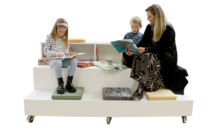 En plus de leur fonction d’assise polyvalente, les podiums et gradins peuvent être complétés par d’autres meubles et accessoires en bibliothèque afin de favoriser différentes formes d’expression créative. L’ajout de coussins, par exemple, améliore à la fois le confort et l’esthétique des podiums, les rendant plus accueillants pour les enfants lors des séances de lecture ou d’activités ludiques. Notre Podium et Gradins Verona peut, par exemple, accueillir jusque’à 15 coussins.