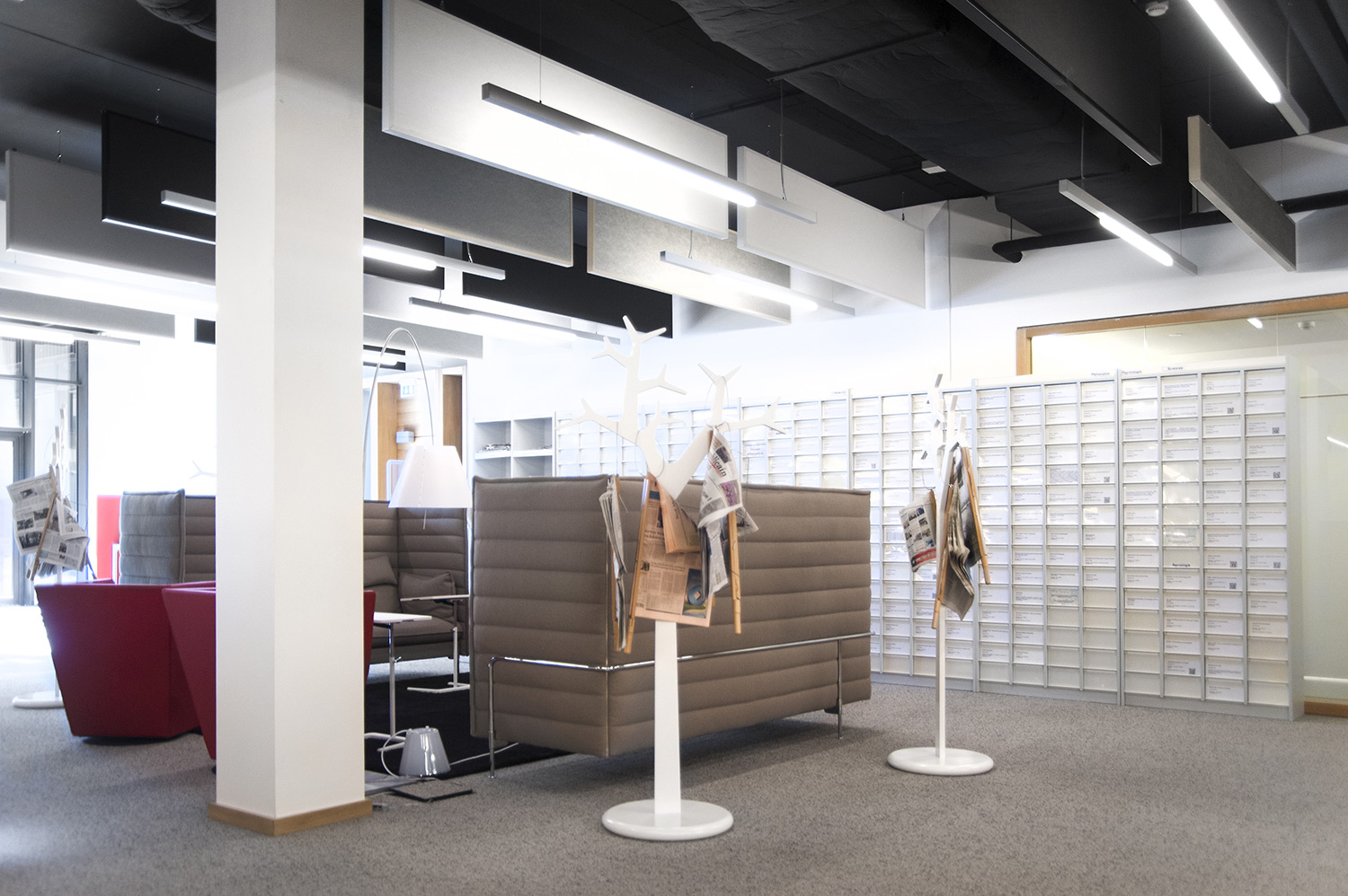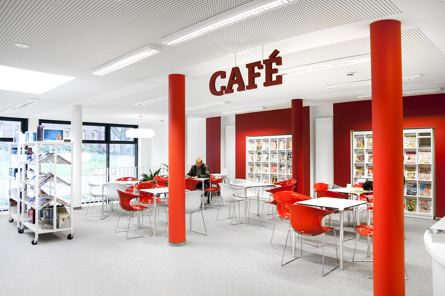 La plupart des utilisateurs considèrent la lecture des journaux et périodiques comme un plaisir personnel et un moment de détente. Cet espace est donc généralement aménagé à proximité de la zone d’accueil et de préférence non loin d’une fenêtre offrant un bon éclairage naturel et si possible, une vue agréable. Si la bibliothèque possède une cafétéria, il peut être judicieux de prévoir cet espace juste à côté afin que le visiteur puisse se consacrer à sa lecture des dernières nouvelles du monde devant une bonne tasse de thé ou de café.