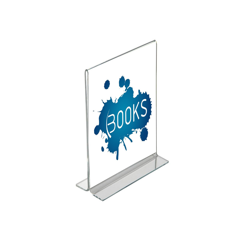Présentoir pratique pour la signalisation et l’information. Double face pour les tables, les banques d’accueil, etc.