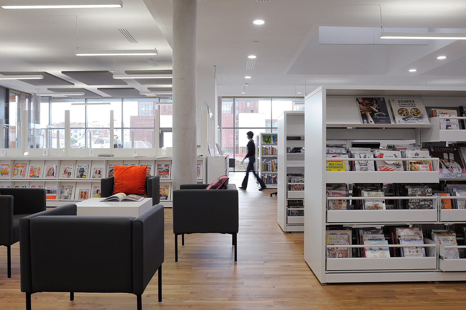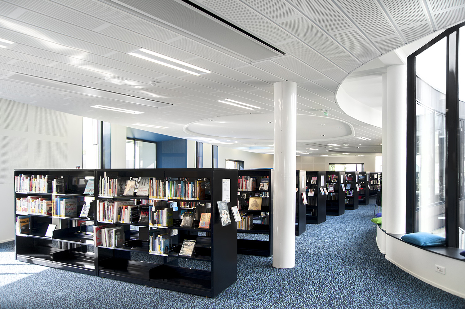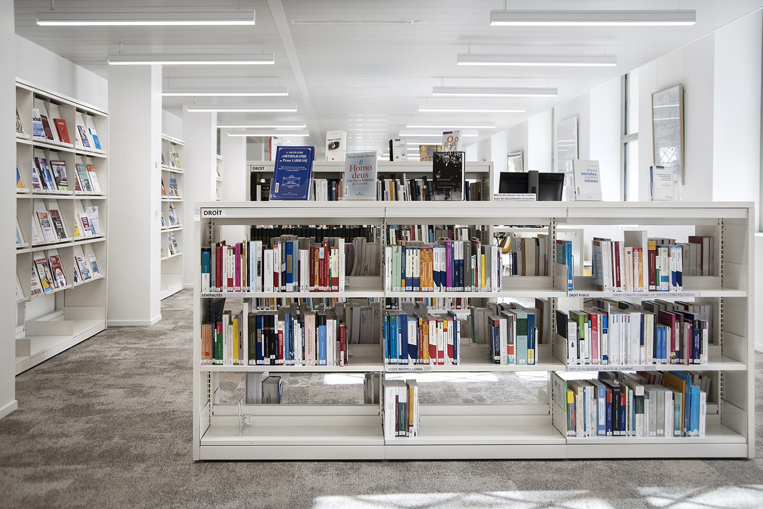 Un fer plat en aluminium laqué est fixé à l’avant du panneaux d’extrémité pour plus de protection et allonger la durée de vie. Un socle en métal peut être ajouté pour souligner l’encadrement du rayonnage.