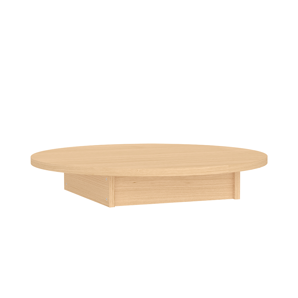 Le plateau est proposé en trois déclinaisons : Ø80 cm, Ø90 cm et Ø90 cm avec une ouverture centrale. Cette dernière version permet l’intégration directe d’une plante dans le podium, apportant ainsi une dimension naturelle et décorative à l’aménagement.