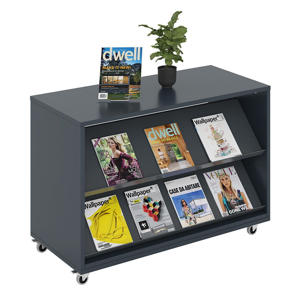 Grâce à ses deux tablettes inclinées accessibles des deux côtés, Lena offre une visibilité optimale des documents tout en facilitant leur prise en main par les visiteurs. Son format compact permet de créer facilement des points de mise en avant pour les nouveautés, sélections thématiques ou recommandations de lecture, sans pour autant encombrer l’espace.
