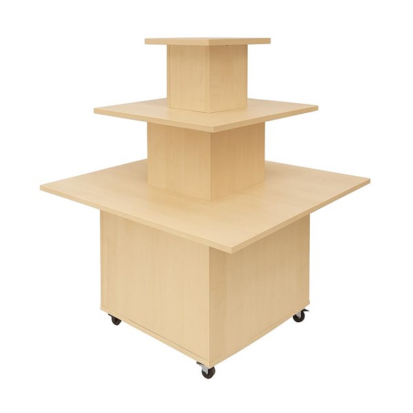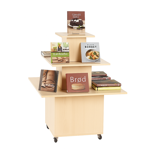 Podium fonctionnel et polyvalent pour la présentation de livres et/ou autres médias. Idéal pour attirer l’attention à l’entrée ou pour créer des zones de présentation dans votre bibliothèque.
