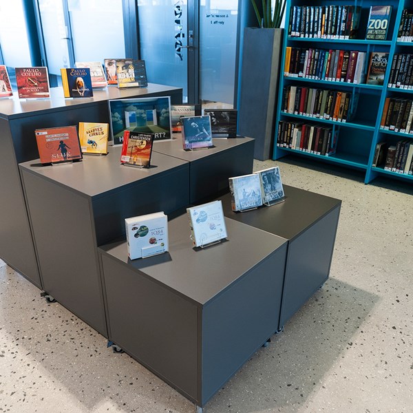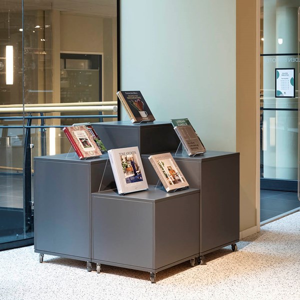 Le podium possède un couvercle amovible et des séparations astucieuses permettant de diviser la partie supérieure en 2 à 4 compartiments, en fonction de la taille des livres.
